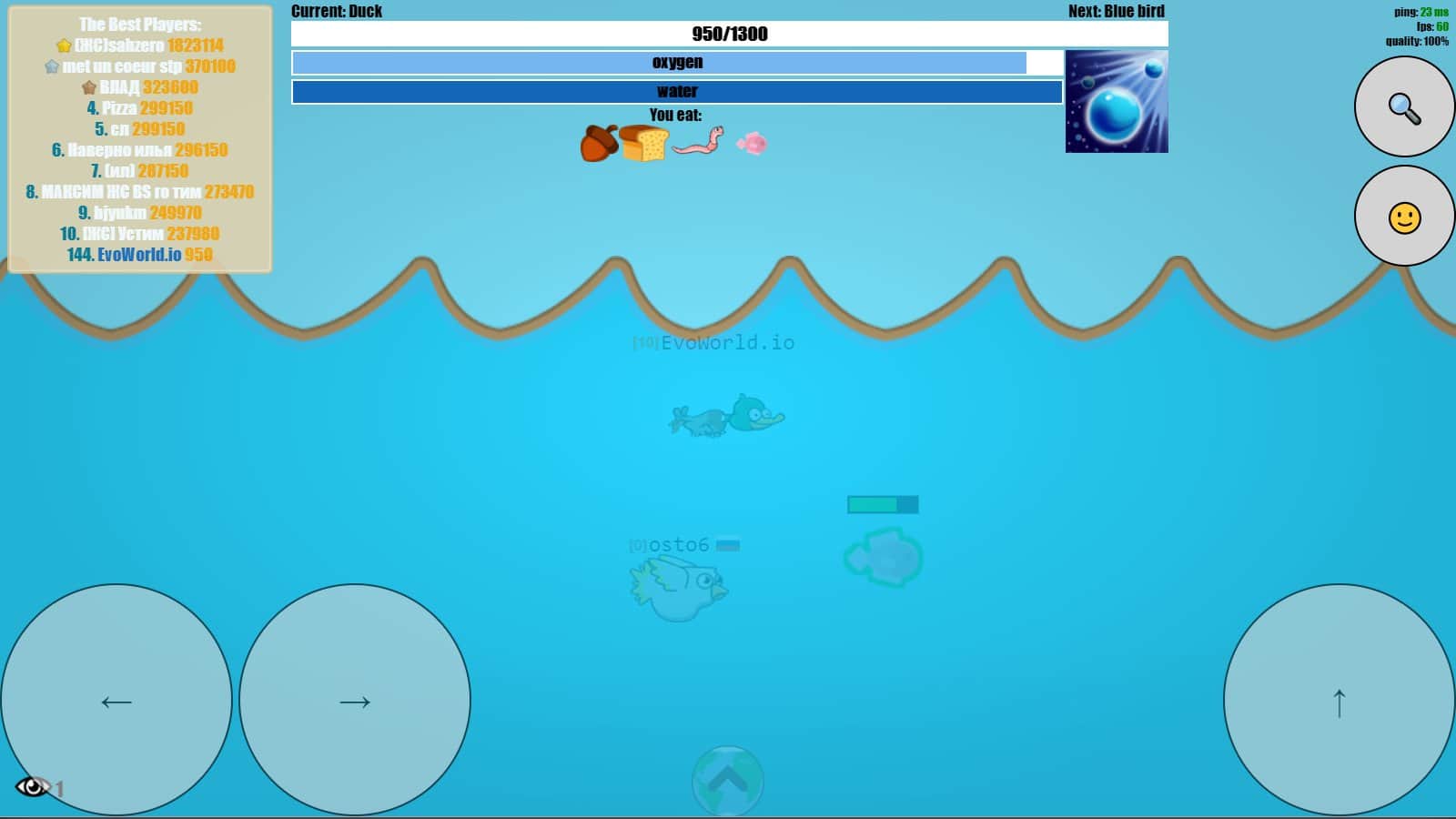 EvoWorld.io: Покорение Пищевой Цепи В EvoWorld.io вы становитесь частью захватывающего онлайн мира, где выживание зависит от ваших навыков и стремления стать самым сильным существом. Запомните, что ваш путь начинается в полете, где вы должны поедать зеленые области и остерегаться красных хищников. Используйте облака и кусты как стратегические укрытия, чтобы уйти от опасности и поддерживать свою жизнь. Оптимальное использование этих укрытий поможет вам выживать в этом динамичном мире.