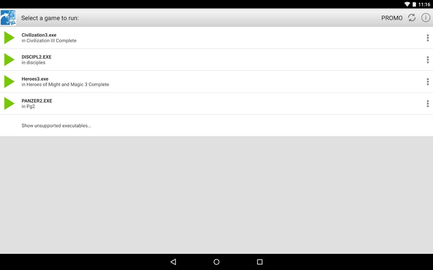 ExaGear Strategies - этот эмулятор позволит вам играть в ваши любимые стратегии для ПК, на вашем андроид устройстве. Работает оно очень просто, вы устанавливаете и запускаете приложение, после чего оно создает папку и туда вы скидываете установленные стратегии с ПК, а после снова запускаете приложение и выбираете нужную игру. Будьте внимательны, само приложение не содержит игр и является лишь эмулятором необходимым для их запуска. Управление адаптировано под такие игры как: