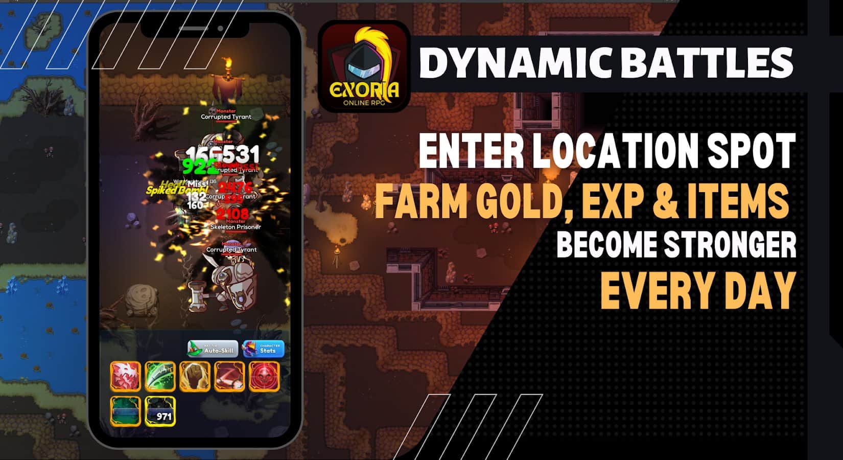 Exoria Online Idle RPG Clicker - Невозможно сразу полностью исследовать огромный мир, поэтому приходится изучать каждую отдельную часть его территории! Создайте нового персонажа и начните прямо сейчас подготавливать его к будущим сражениям с монстрами, наращивая боевую готовность и снаряжение. Перед вами всегда открыта арена PVP, магические способности и даже коллекция редких предметов, способных изменить ход игры. Определитесь с видом оружия для использования и регулярно тренируйтесь, улучшая собственные способности в правильном использовании этого оружия.