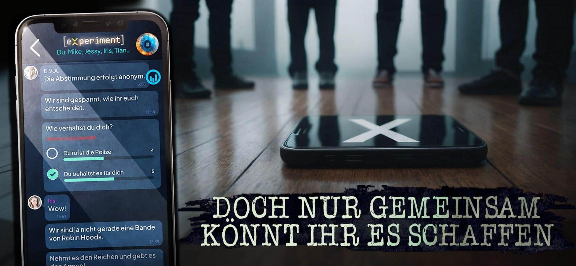 Experiment - gut oder böse? - Вы становитесь участником загадочного психологического эксперимента, попадая в группу незнакомцев. Вместе вам предстоит решать задачи, которые якобы направлены на изучение групповой динамики. Но невинное начало постепенно оборачивается игрой на грани реальности и вымысла, где демонстрация силы становится центральной темой. Что скрывается за этим экспериментом? Кто управляет событиями и какие цели они преследуют? Чтобы узнать правду, вам придется принять непростые решения и столкнуться с испытаниями, которые проверят ваши моральные границы. Ваши выборы определят развитие истории в этом напряженном интерактивном психологическом триллере. Как далеко вы готовы зайти?