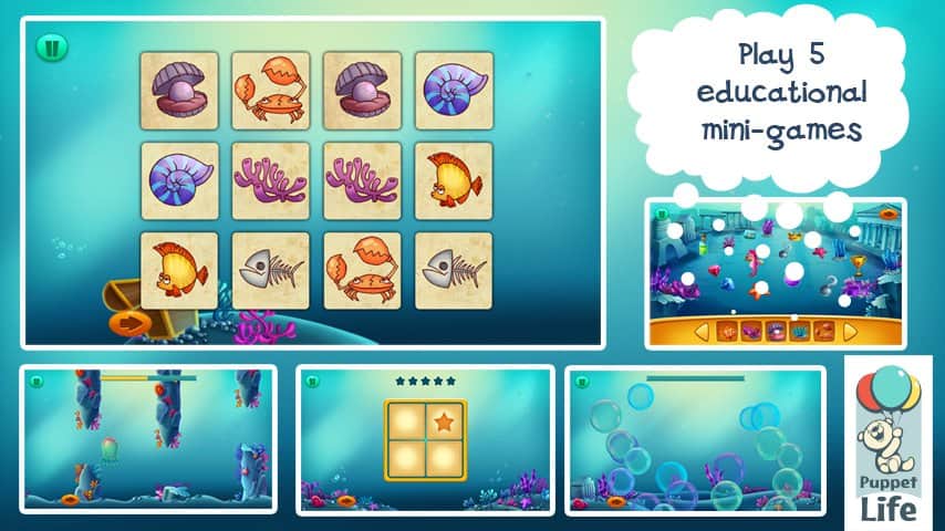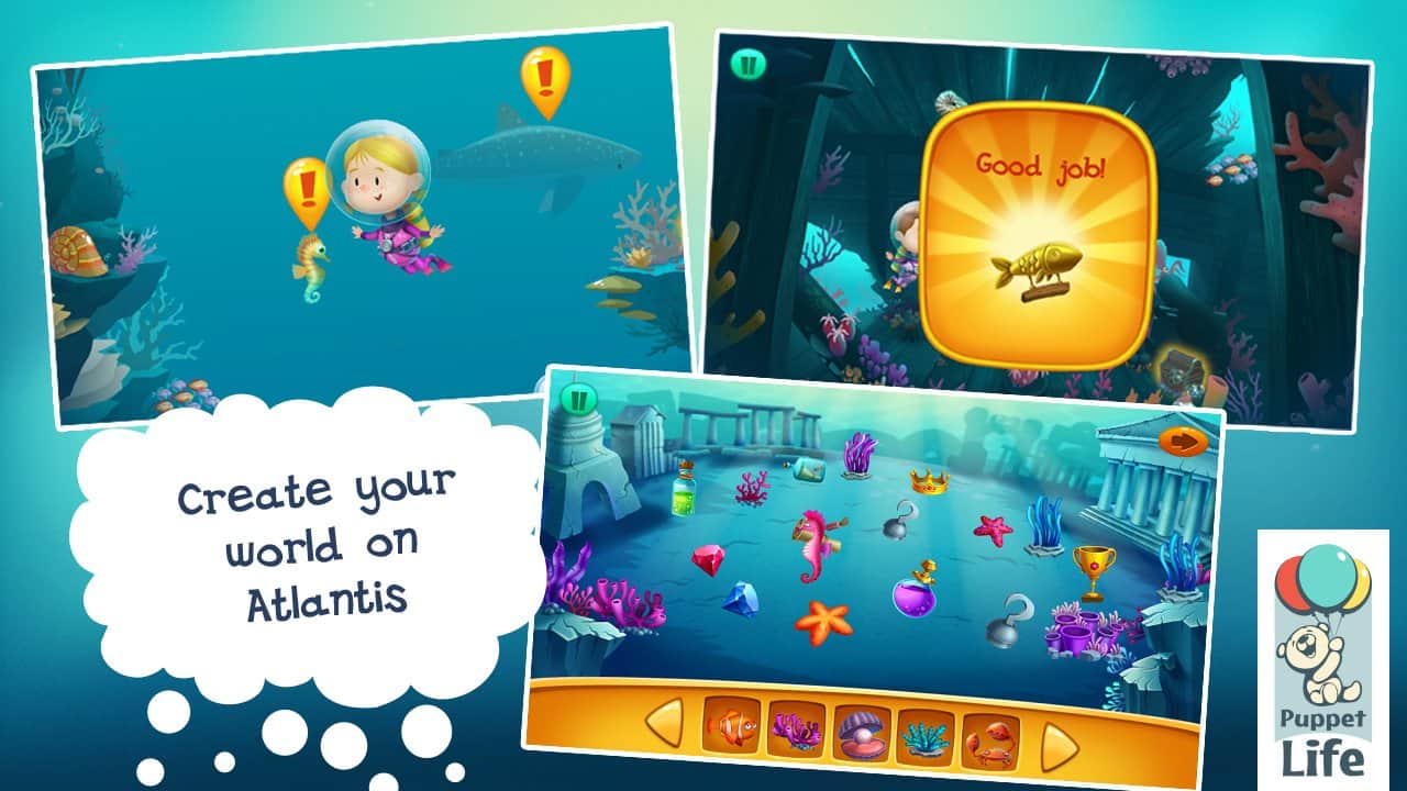 Подводный мир для детей – отправляйтесь вместе со своим чадом в увлекательное путешествие по подводному миру в поисках затерянной Атлантиды. Данная игра носит не только развлекательный характер, но и познавательный; направлена на развитие логических способностей, проявления сообразительности, развитие памяти. Красочный подводный мир, в свою очередь познакомит с жителями глубин океана, более 50 фактов о которых представлены в виде маленьких энциклопедических сводок. И наконец, самое главное данная игра не содержит рекламы и ссылок на социальные сети!