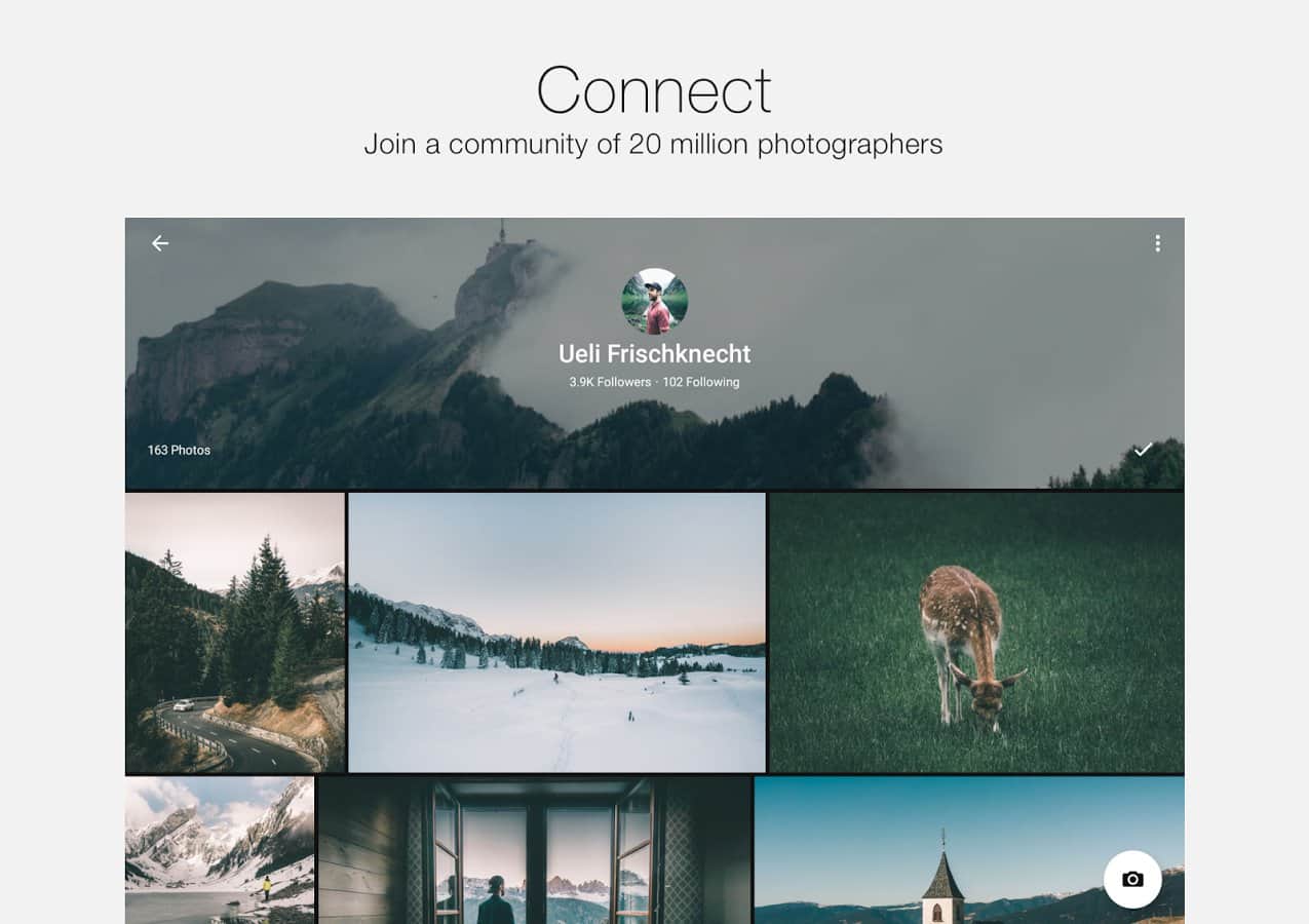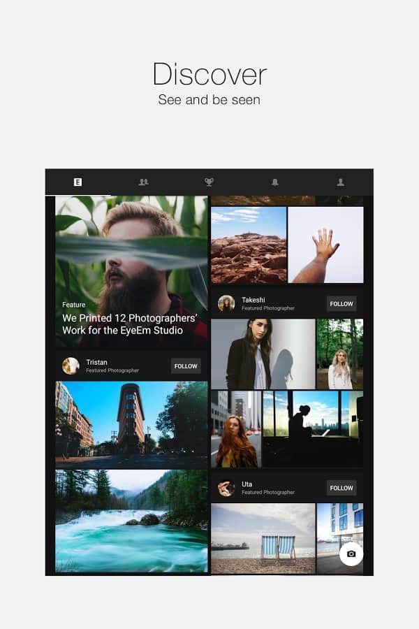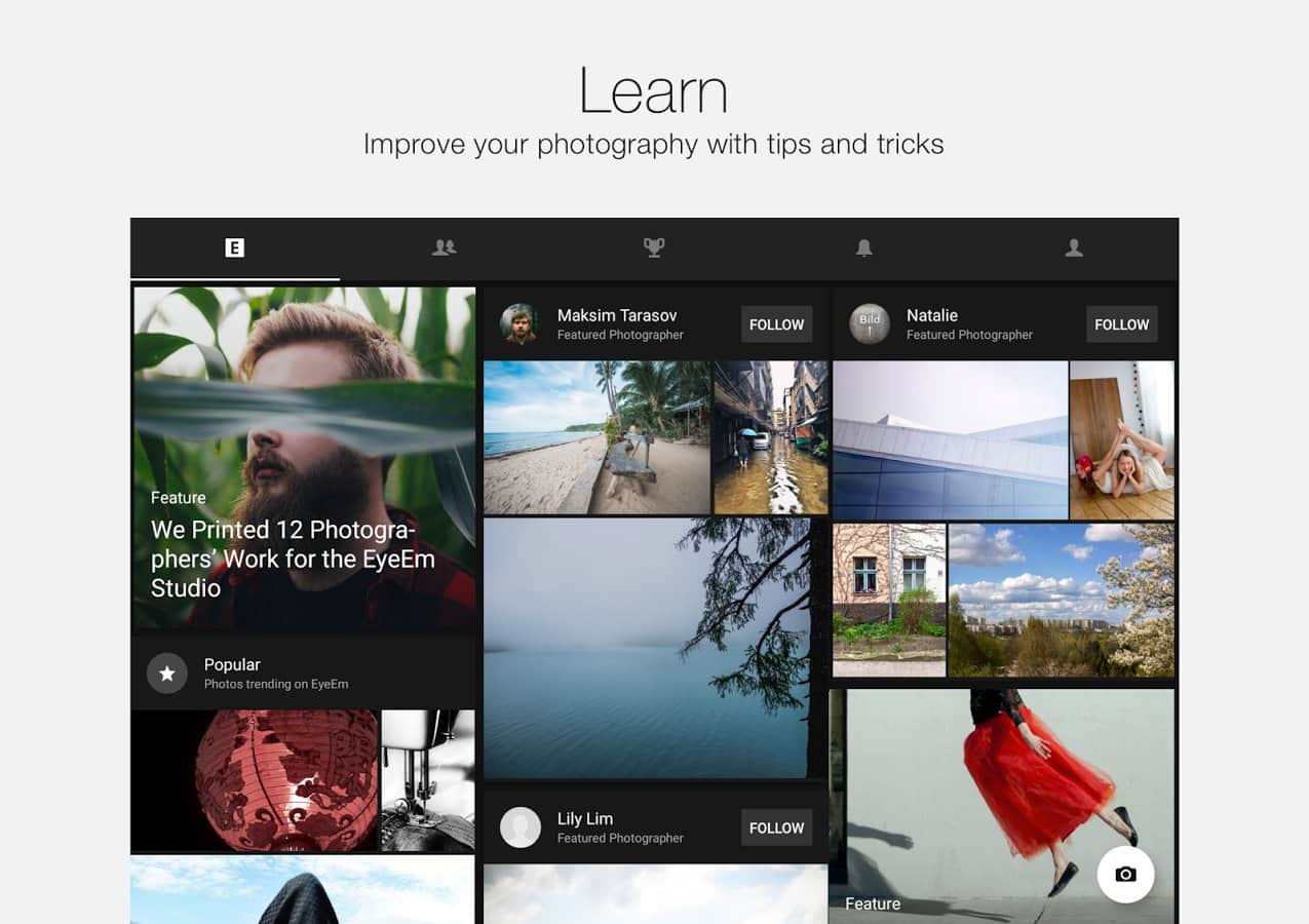 Если делиться своими снимками хочется, а на Инстаграм у вас стойкая аллергия, можете обратить внимание на EyeEm. Приложение по качеству ничем не уступает вышеозначенному аналогу, имеет интересные фильтры и несколько наиболее востребованных инструментов для редактирования снимка, приятно радует и многочисленная, по-хорошему разношерстная аудитория сервиса, где каждый сможет найти себе подписки по интересам, более того, хитрая система поиска позволяет отслеживать не только людей, но и отдельные альбомы, снимки мест и тому подобное.
