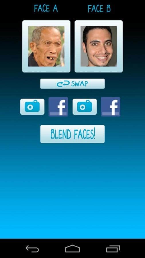 Face Blender - клевое приложение для андроид, которое принесет огромное количество положительных эмоций. Берем одно свое фото, фото друга или подруги и смешиваем их, получается весьма забавно. Людям без чувства юмора скачивание запрещено!