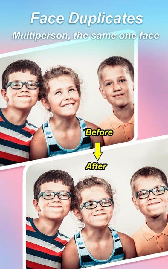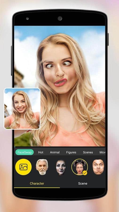 Face Swap - Простое и очень забавное приложение для редактирования фото с помощью которого вы сможете создать крутую фотографию и добавить себе забавных эффектов. К тому же вы можете не только редактировать уже сделанные фото а и накладывать эффекты в реальном времени. Все что вам нужно это подобрать эффекты и стикеры, и навести на того кого собираетесь сфотографировать, дальше просто ждите завершения обработки и получаете великолепное новое фото.