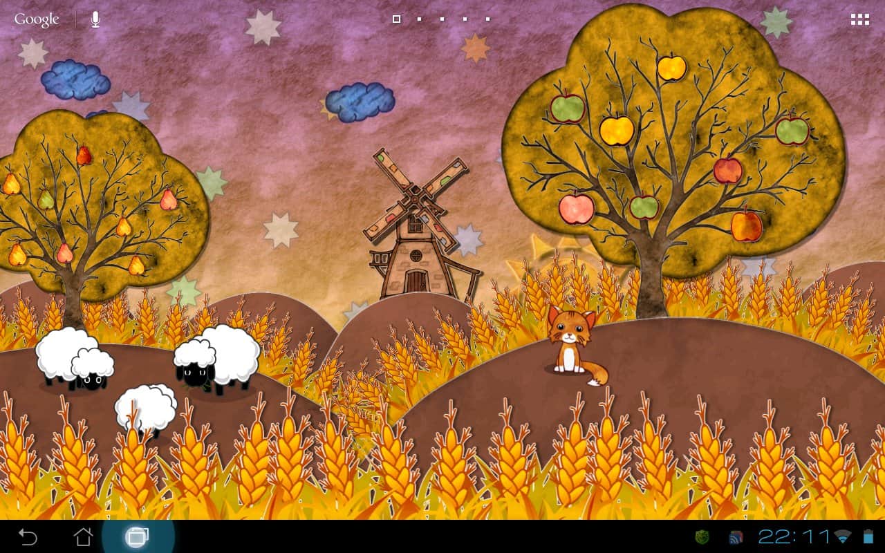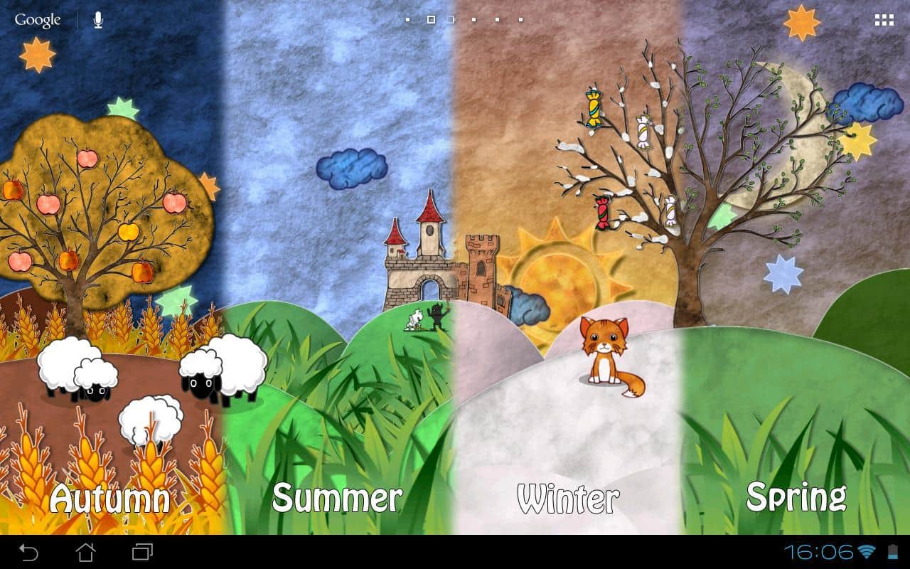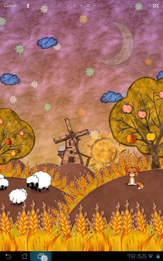 Fairy Field Wallpaper – времена года на живых обоях отTallMouse Games для андроид. Приятная мультяшная анимация, реагирующая на прикосновения и автоматически меняющая время суток и время года относительно вашего местоположения. Ну а если вам по душе ночное лето, вы с легкостью можете устроить его себе установив в ручную. Изменить окружающий мир можно с помощью большого количества настроек. А так же выбрать одного из четырех персонажей и поселить его на полянку.