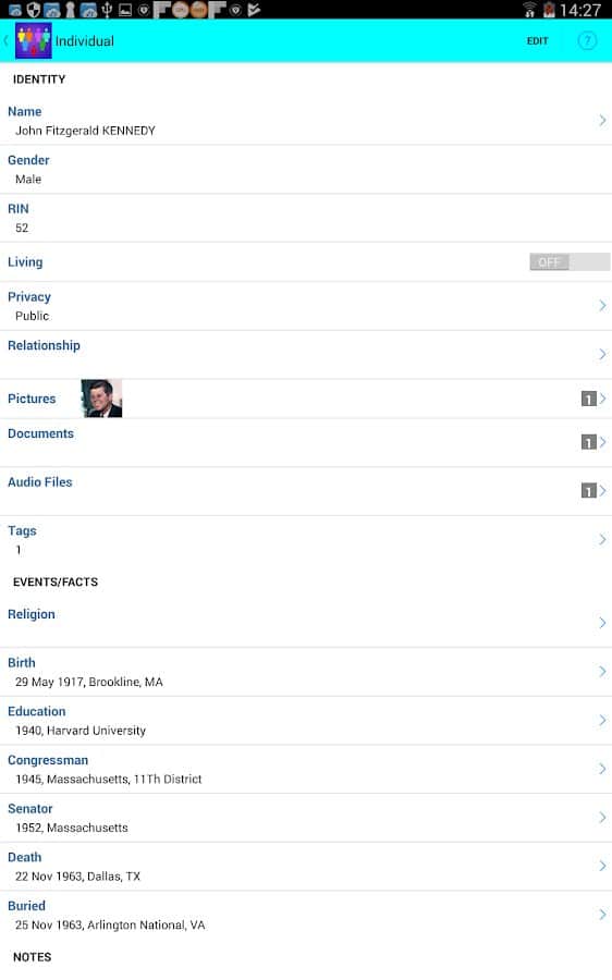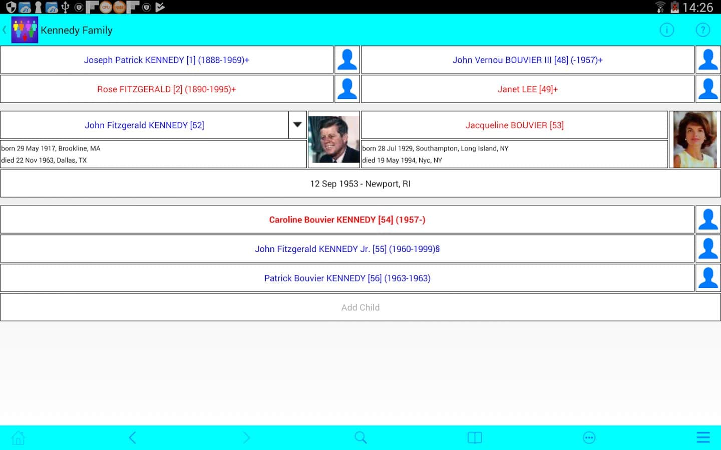 - Создание, управление и редактирование генеалогического дерева на экране устройства