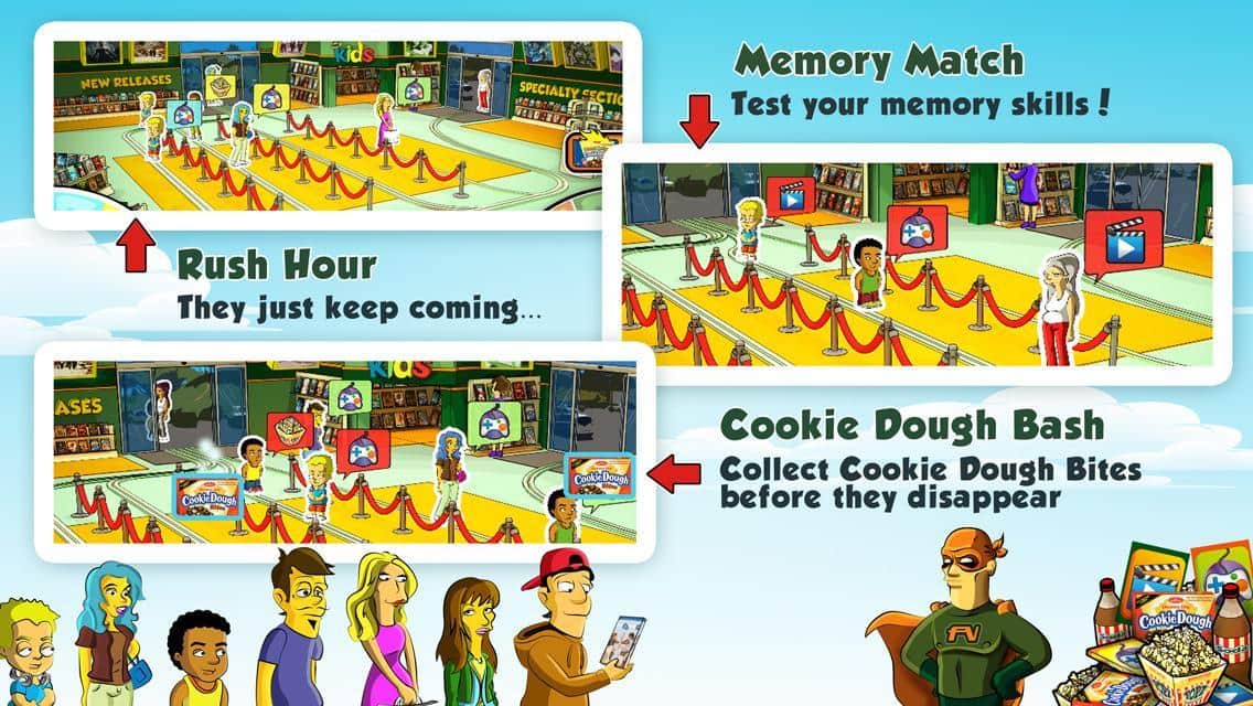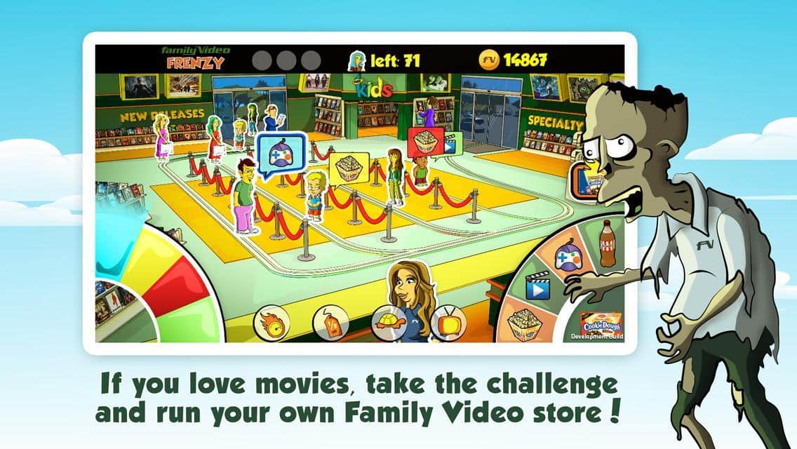 Family Video Frenzy – своеобразная аркадная игра для андроид, в которой вы владелец видеосалона и к вам приходят различные клиенты со своими запросами и требования. Удовлетворите всех покупателей, предоставив им необходимый товар быстро и качественно, что бы все остались довольны. Вам доступны: