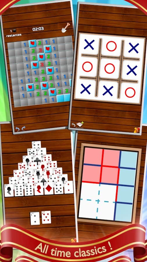 Family's Game Travel Pack – отличная настольная игра, собравшая в себя множество традиционных настольных игр. В этой игре вы найдете такие игры как: шахматы, шашки, нарды, реверси, пасьянсы, гольф, паук, покер, квадраты и многие другие. В эту игру одновременно могут играть до шести человек на одном устройстве. Кроме того, присутствует режим Wifi и Bluetooth где вы сможете играть с друзьями и другими игроками со всего мира. Поднимайтесь все выше в таблице лидеров и прокачивайте свои умения и навыки в разных играх.