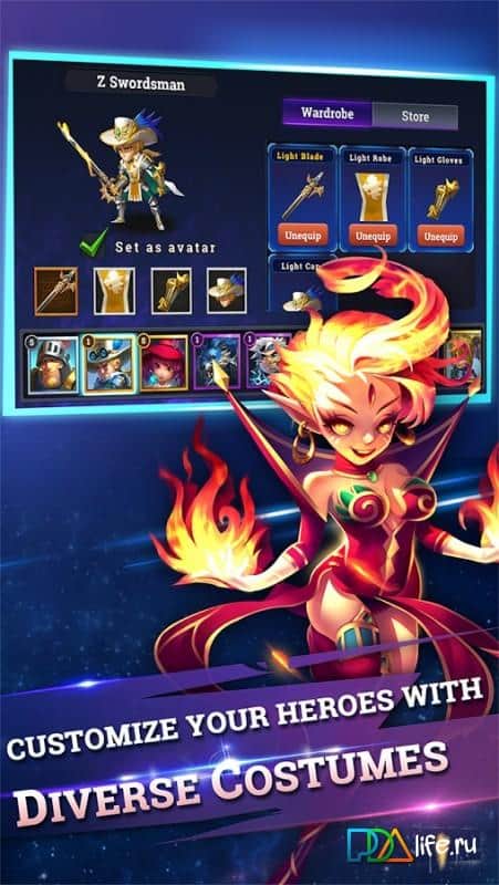 Fantasy Arena – онлайн игра на андроид, где вы будете собирать свою непобедимую коллекцию карт. Каждый герой в этой игре обладает своими неповторимыми способностями и атаками. Соберите свою коллекцию героев и бросайте вызов сильнейшим игрокам, сражаясь с ними на арене. Путешествуйте по сказочному миру этой игры и вступайте в нелегкие схватки с врагами, побеждая их путем мощных комбинаций карт. Старайтесь собрать такую коллекцию героев чтобы каждый их них взаимно заменял другого героя и вместе они смогли победить самых опасных соперников. Применяйте разрушительные комбо удары и наслаждайтесь красочными спецэффектами. Приобретайте для своих героев различные костюмы и наделяйте их новыми умениями.