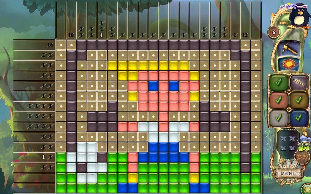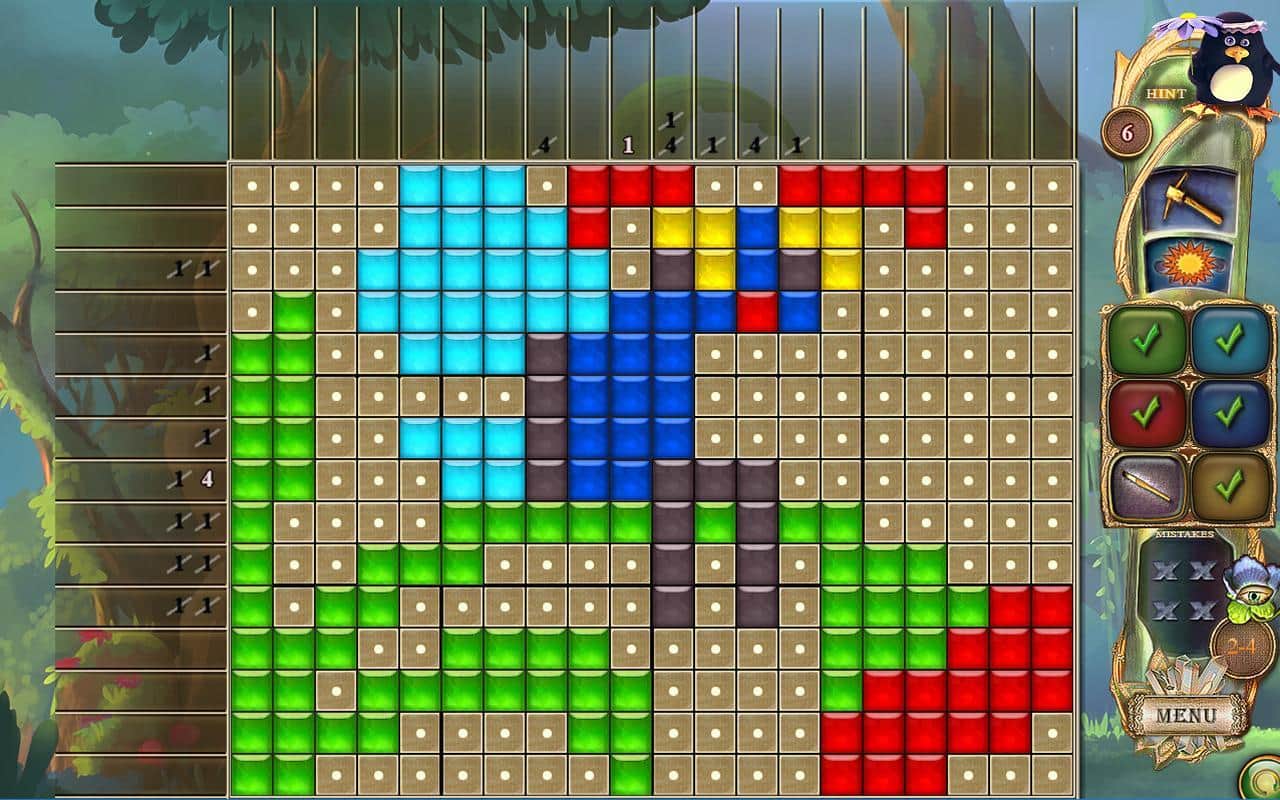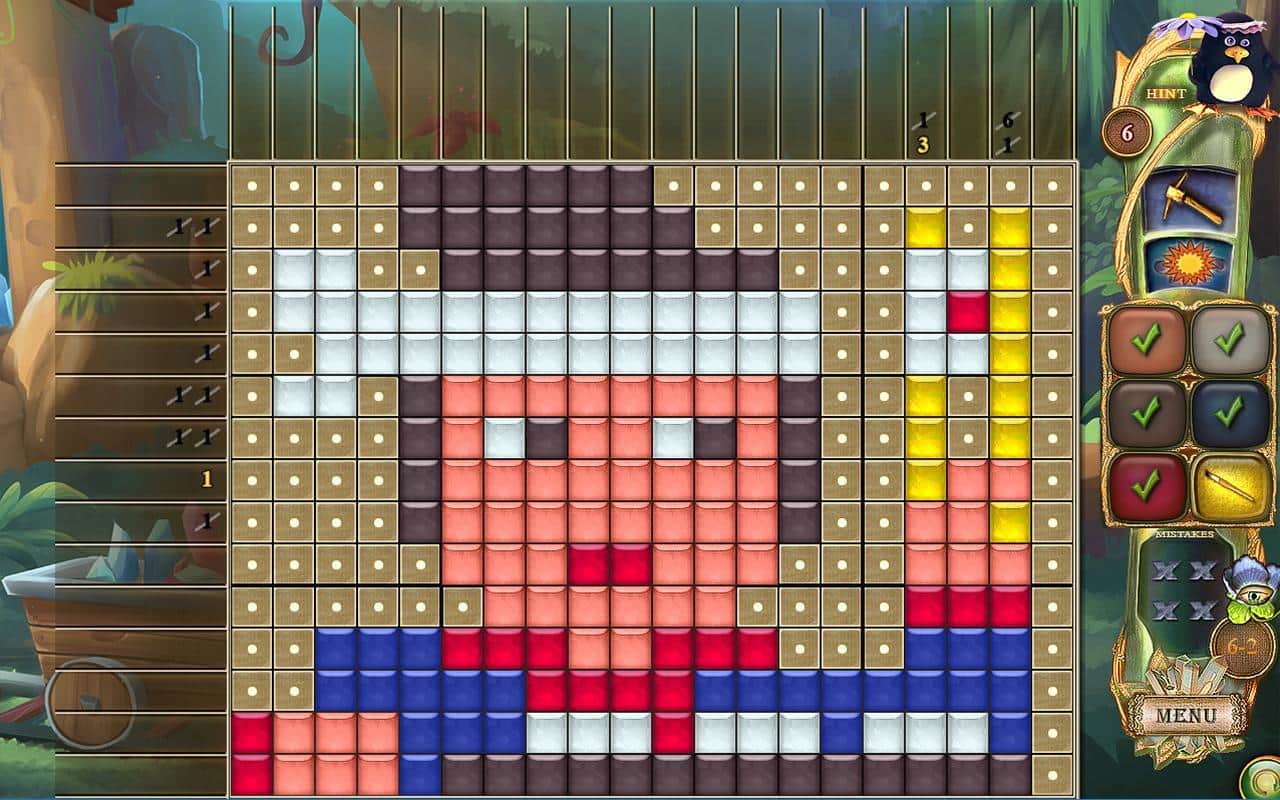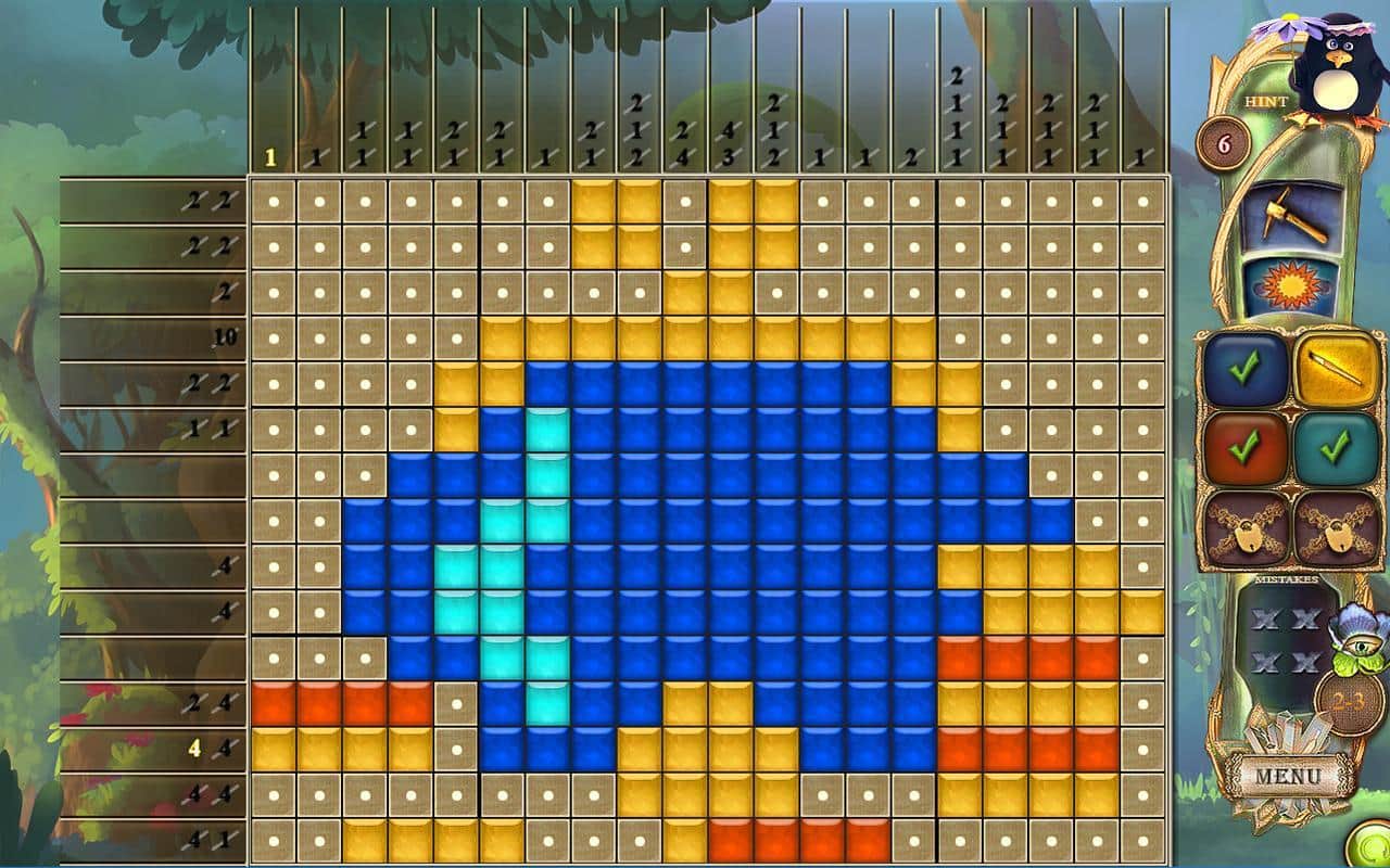 Fantasy Mosaics 28: Treasure Map – головоломка на андроид, где вы будете помогать пингвину Пенни найти карту с сокровищами. Отправляйтесь вместе с пингвином и его семьей в увлекательное путешествие и найдите клад. Перед вами окажется большая коллекция красочных головоломок-мозаик вашей задачей будет раскрашивать их по цветам и таким образом продвигаться все ближе к сокровищам. Раскрашивайте картинки по цифрам в разные цвета и получайте по итогу красочные картинки с различными изображениями героев. Помогите пингвину найти сундук с сокровищами и разгадать все головоломки, основанные на логике.