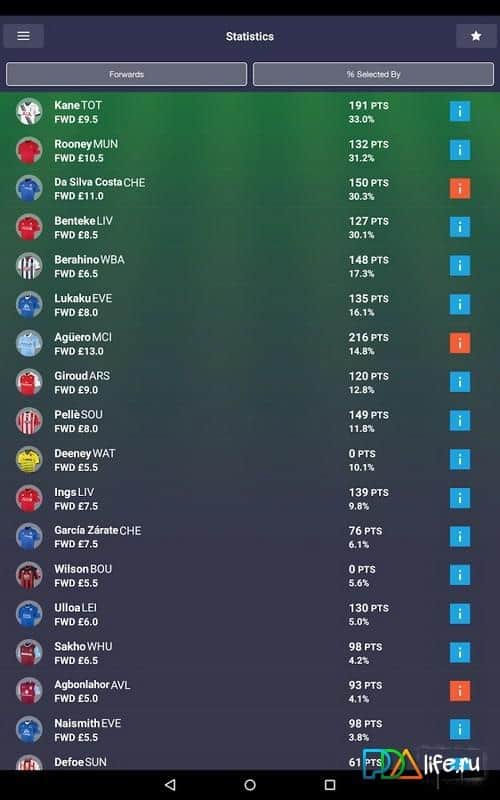 Fantasy Premier League 2015/16 – симулятор футбольного менеджера на андроид, с помощью которого вы попадете в премьер лигу по футболу 2015-16 года. Уже более 3 миллионов игроков играют в эту игру, присоединитесь и вы к ним. В этой игре для вас откроются невероятные возможности, где вы сможете самостоятельно выбрать себе футболистов и менять их порядок на поле. Наблюдайте за производительностью вашей команды и в частности каждого игрока и проводите исследования, чтобы добиться желаемого результата. В этой игре для вас будут доступны все профили игроков, на протяжении всего сезона. Следите за прогрессом вашей команды и идите к победе любой ценой.