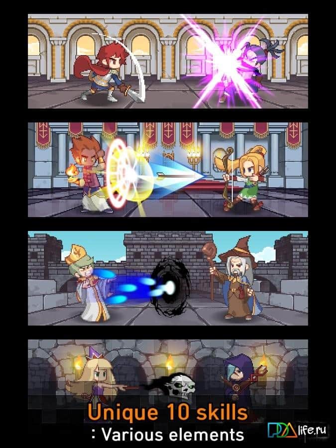 Fantasy Puzzle Saga - Увлекательная головоломка по типу три в ряд на андроид с элементами РПГ. Да не просто с элементами, а с основной составлявшей игры. Вас ждет удивительное приключение в мире героев, мечей, и магии. Все бои будут происходить во время решения головоломки. Также не забывайте улучшать своего героя, покупать ему экипировку и различные принадлежности. Графика в игре выполнена в пиксельном стиле.