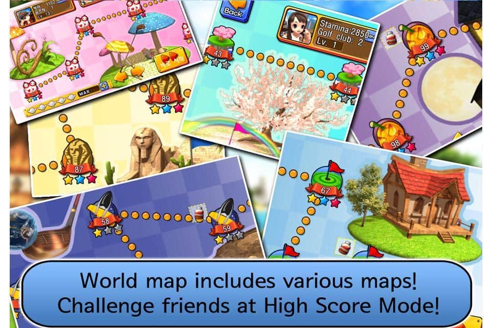 FantasyGolfSagaN - спортивная игра, в которой вы попадете в гольф клуб с красивыми и живописными полями. Выбирайте себе персонажа и одевайте его в понравившуюся одежду. Играйте в гольф и наслаждайтесь легким управлением в три прикосновения, в первых установите мячик, затем размахнитесь и ударьте по мячу, рассчитывая силу удара в зависимости от расстояния до лунки. В этой игре вас ждут неописуемо красивые поля для гольфа такие как: чудесные зеленые равнины, страна чудес с бегающими кроликами, тема Хэллоуина и знаменитые места с уникальными памятниками и чудесами света. Пройдите все захватывающие места и соревнуйтесь со своими друзьями зарабатывая максимальное количество очков.
