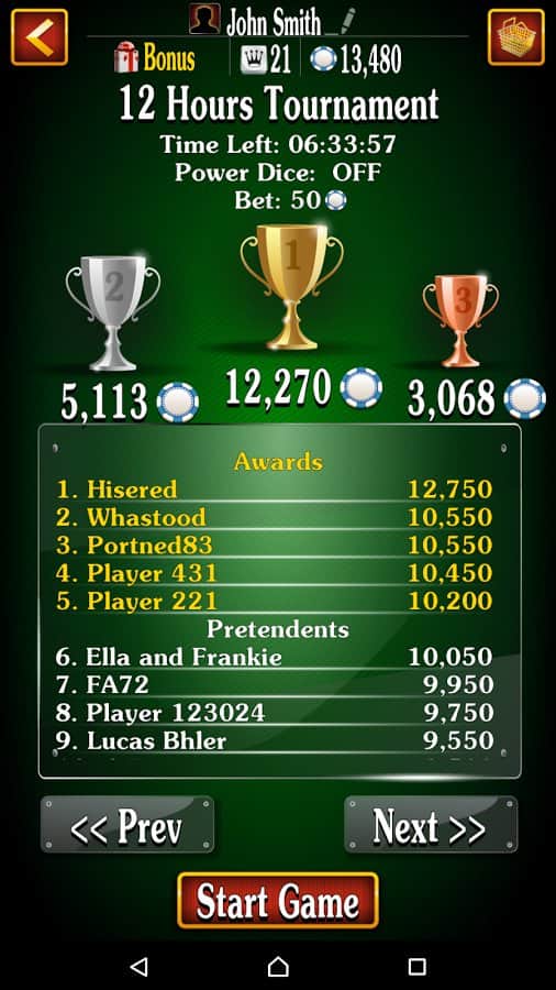 Farkle Dice Game – бросайте кости и набирайте достаточное количество очков. Правила в этой игре очень просты вашей задачей будет кидать шесть игральных костей на стол и набирать очки от успешных комбинаций. Покажите свою мастерство и пускай фортуна улыбнется вам иначе вы не сможете набрать достаточно очков. Всего вы сможете кидать кубики десять раз. Начисление очков будет происходить следующим образом, если при броске у вас выпадет несколько парных костей или комбинаций, то вы сможете набрать максимальное количество очков, если будете достаточно удачливы. Разработайте свою комбинацию правильной и удачливой игры и попробуйте свои силы в трех режимах.