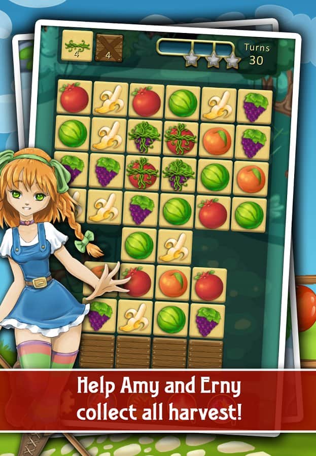 Farm Adventure Match – игра из жанра «три в ряд» где вам предстоит путешествовать по различным фермам и собирать урожай. В этой игре вы вместе с Эми и ее котом по имени Эрни будете собирать поспевший урожай на ферме. Складывайте в корзину по три и более фрукта и освобождайте место для других. Исследуйте огромный мир игры, где для вас откроются более 16 видов овощей и фруктов, которые вам необходимо собрать. Применяйте бля быстрого завершения уровня различные бонусы и комбо удары и накапливайте очки. Впереди вас ждут более 70 разнообразных ферм, где вам предстоит собрать весь урожай. Поставьте свой рекорд в этой игре и наслаждайтесь приятной графикой и музыкой.