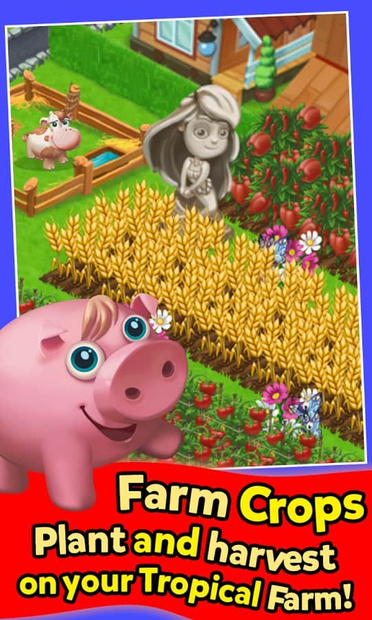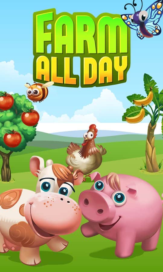 Farm All Day – создайте свою неповторимую ферму в этой игре на андроид и сделайте ее самой прибыльной. В этой игре вы займетесь сельскохозяйственными работами, будете выращивать овощи и фрукты, а также сеять пшеницу, рожь, кукурузу и другие злаки. Продавайте свой урожай соседям и в своем магазине и покупайте на заработанные деньги домашних животных таких как: куры, коровы, овцы и лошади. Собирайте достаточное количество урожая и изготавливайте разнообразные пироги и хлеб. Используйте самолет и привозите для своих нужд товары из любой точки мира или отвозите на нем свои заказы. Проходите захватывающие миссии, и создайте свою неповторимую ферму.
