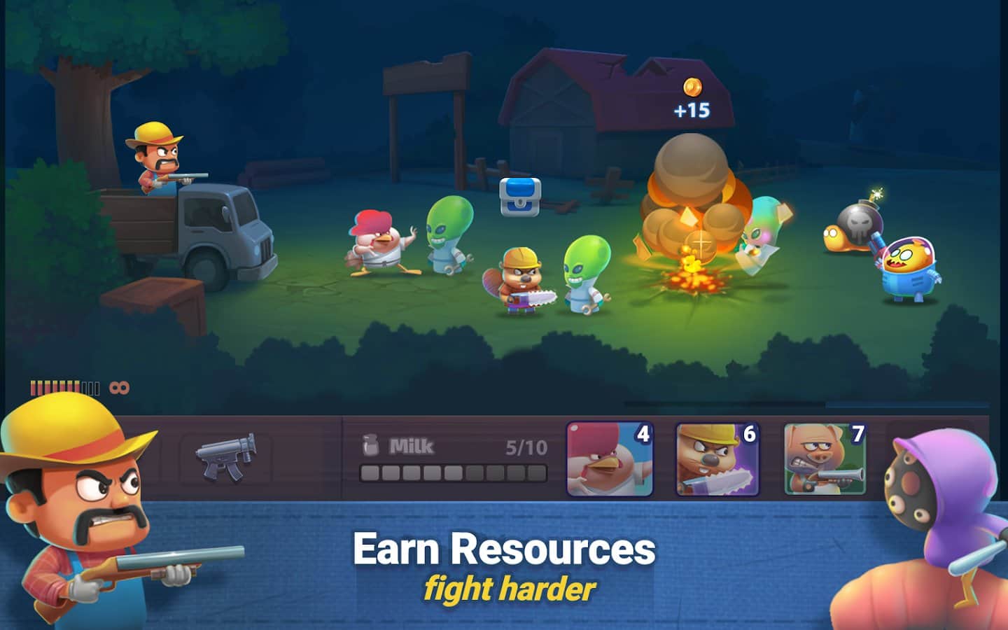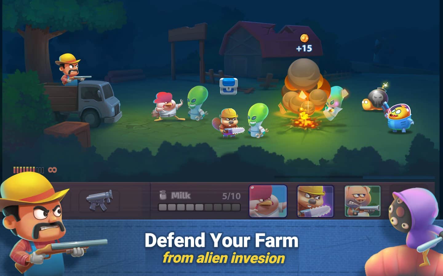 Farm Guns: Alien Clash 2018 – увлекательная игра на андроид, где вы будете помогать отважному фермеру уничтожать пришельцев. Пришельцы прилетели на нашу планету для того чтобы похитить всех коров и их молоко которое понадобиться для создания супероружия. Отважный фермер вооружившись дробовиком, пистолетом и другими видами оружия в одиночку держит оборону своей фермы и уничтожает приближающихся пришельцев. Нажимайте на экран своего телефона или планшета и помогайте фермеру не дать пришельцам осуществить свой план. Призывайте на помощь животных и вместе давайте отпор злодеям.