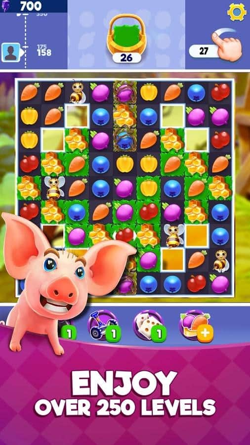 Farm Slam - Match-3, Build & Decorate Your Estate! – захватывающая игра из жанра три в ряд на андроид, где вы перенесетесь на ферму. В этой игре вы познакомитесь с милыми и разнообразными персонажами, которым будете помогать составлять ряды из одинаковых овощей и сельскохозяйственных культур. Положитесь на свою сообразительность и отличную реакцию и составляйте ряды из трех и более предметов и зарабатывайте монетки, которые вы сможете потратить на покупку очаровательных предметов для фермы. Впереди вас ждет увлекательное путешествие где вы на протяжении 250 уровней будете, засучив рукава составлять ряды из предметов.