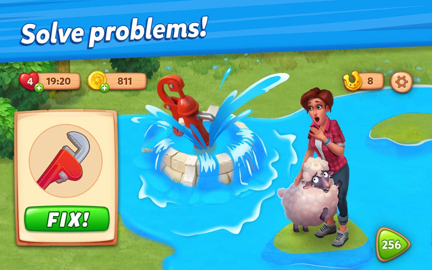 Farmscapes - постоянный поток жизни со временем надоедает, хочется почувствовать вкус жизни и соединиться в одно целое с полной тишиной вокруг, только вы и природа. Пора начать превращать мечты в реальность, поэтому помогите восстановить старинную ферму и перебирайтесь туда. Вам придется столкнуться со многими проблемами, находить быстрые решения, научиться правильно играть в мини-игру "Три в ряд", решительно переходить на новые уровни и не бояться исследовать территории вокруг. Проходите насыщенную сюжетную линию, декорируйте окружность, создайте идеальное местечко!