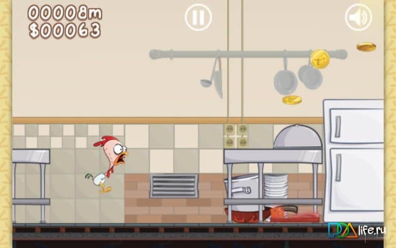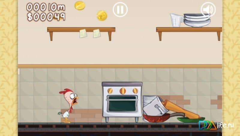 Fast or Fried – платформер на андроид, где вы будете помогать цыплёнку убежать от кровожадного повара. Бегайте по кухне и уклоняйте от различных летающих предметов, обходите стороной многочисленные смертельные ловушки и собирайте как можно больше золотых монет. Чем больше монет вы соберете тем выше у вас будет шанс получить разнообразные предметы защиты, которые помогут вам укрыться от повара. Бегайте по многочисленным уровням игры и открывайте доступ к следующим. Соревнуйтесь со своими друзьями за лучшие результаты и поднимитесь на самый верх таблицы лидеров. Наслаждайтесь приятной графикой, простым управлением и динамичным процессом.