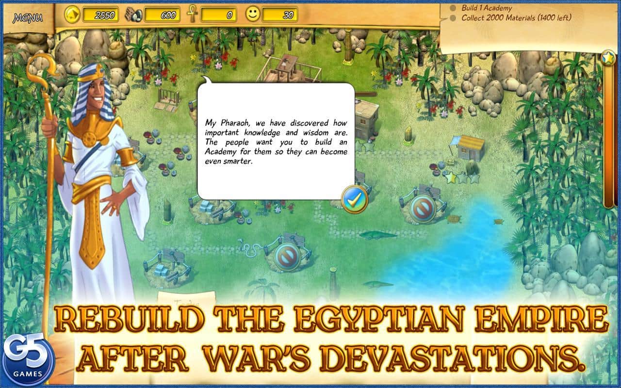 Судьба Фараона - В этой игре вам предстоит вернутся во времена могущественного цивилизации древнего Египта. Но долгая и тяжелая война превратила прекрасное Египетское царство в бедные бескрайние просторы. Отступая жадные захватчики Египта оставляли после себя один ужас и хаос. На местах величайших строений были одни руины. И вы выступая преданным советником фараона должны помочь ему возродить былую славу и богатство в величественных городах Египта.