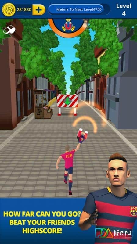 FC Barcelona Ultimate Rush – раннер на андроид, где вы будете управлять бегом знаменитого футболиста Барселоны. В этой игре вы должны провести своего героя по различным уровням игры обходя все препятствия на пути и собирая золотые монетки и бонусы. В игре вашей задачей будет передвигаться по футбольному газону, небольшим улицам города, туннелям метро и другим необычным местам и пытаться найти все похищенные памятники Барселоны. Фрагменты памятников находятся на вашем пути, собирайте их и ведите героя, вперед приходя к финишу первым. Перепрыгивайте через многочисленные преграды и применяйте усиления и бонусы для быстрого прохождения уровня.