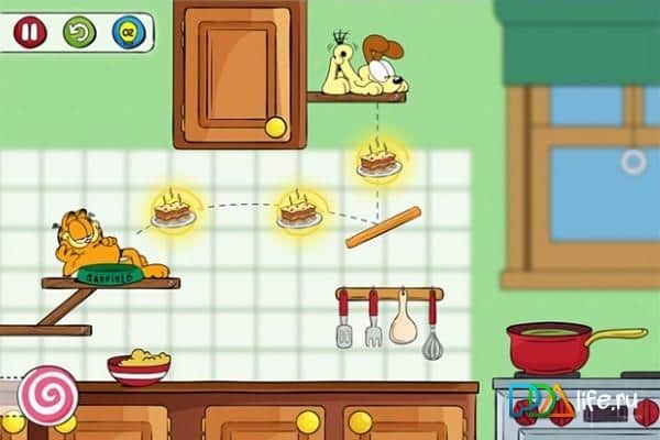 Feed Garfield - игра для windows phone, в которой вам предстоит кормить вашего любимого кота. Джен и Лиз на выходные отправились на Гавайи, но перед отъездом они удостоверились, что оставили достаточное количество еды для своих питомцев. И теперь помощник кота Оди должен выследить еду и используя законы физики и различные предметы положить ее в миску. Но это не легкая задача для пса, и вам предстоит помочь ему разгадать все головоломки и накормить Гарфилда.