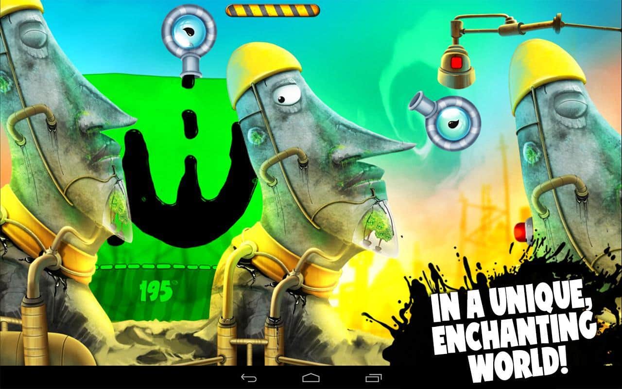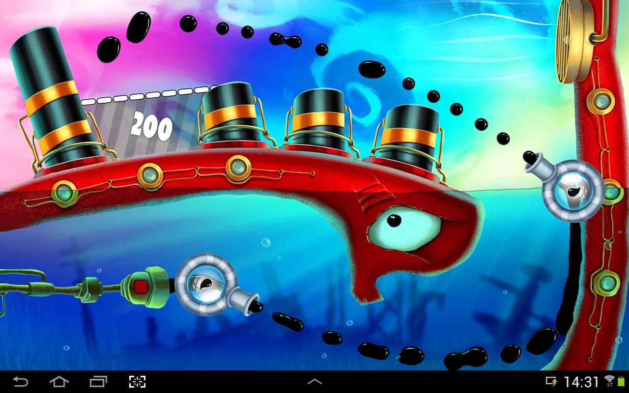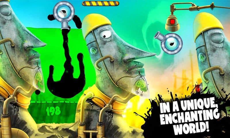 Feed Me Oil 2 - продолжение увлекательной головоломки на андроид. Эта игра довольно сильно похожа на всеми известную World of Goo. Отличная графика и замечательные красочные цвета не оставят равнодушным даже самый строгий глаз игрока. Ваша задача будет заключаться в том, что бы собрать в отдельно отмеченной области карты черный эликсир. Вытекает эта жидкость из крана, который вы будете включать, когда всё тщательно подготовите. Расставляйте стены, пушки и прочие предметы по вашему маршруту жидкости грамотно, чтобы не упустить не одной капли драгоценного черного эликсира. Хватит ли у вас знания, логики и нервов, чтобы пройти все уровни и не потерять не одной капли эликсира?