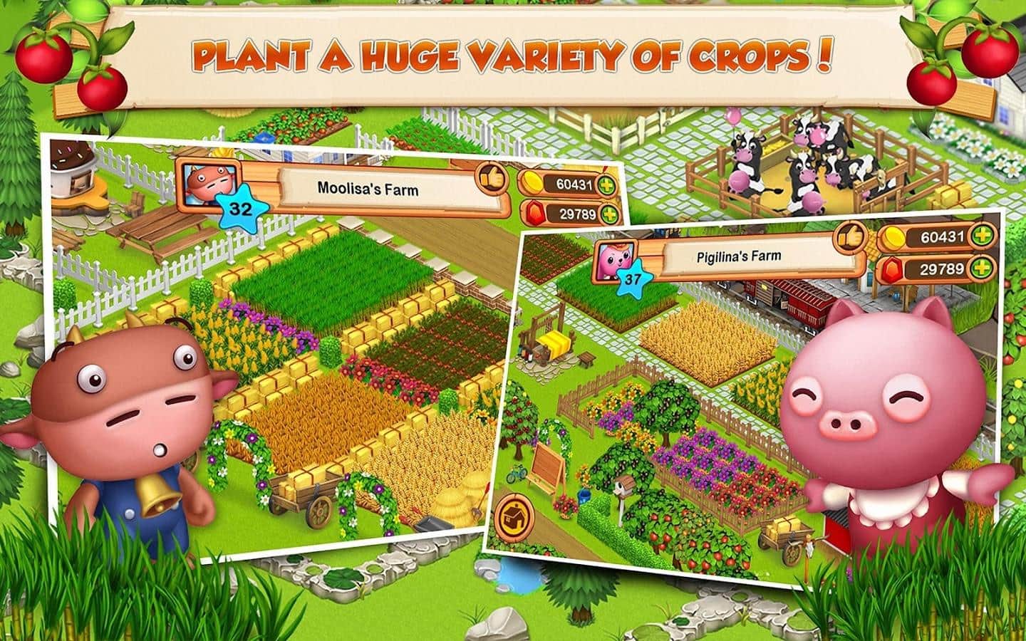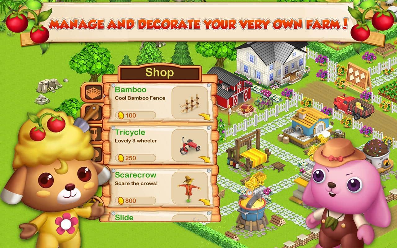 Ферма старого Макдональда - игра про веселую ферму с яркой графикой и разнообразными заданиями. Хозяин этой фермы Макдональд стал совсем старый и не справляется со всеми обязанностями, не может в одиночку содержать ферму, помогите ему в управлении фермой и сделайте ее процветающей. Садите различные культуры, разводите животных, производите нужные товары, о которых просят вас соседи и покупайте у них необходимые ингредиенты. Также вы сможет украсить свою ферму по вашему вкусу сделать клумбы с цветами, поставить беседки и бассейны.