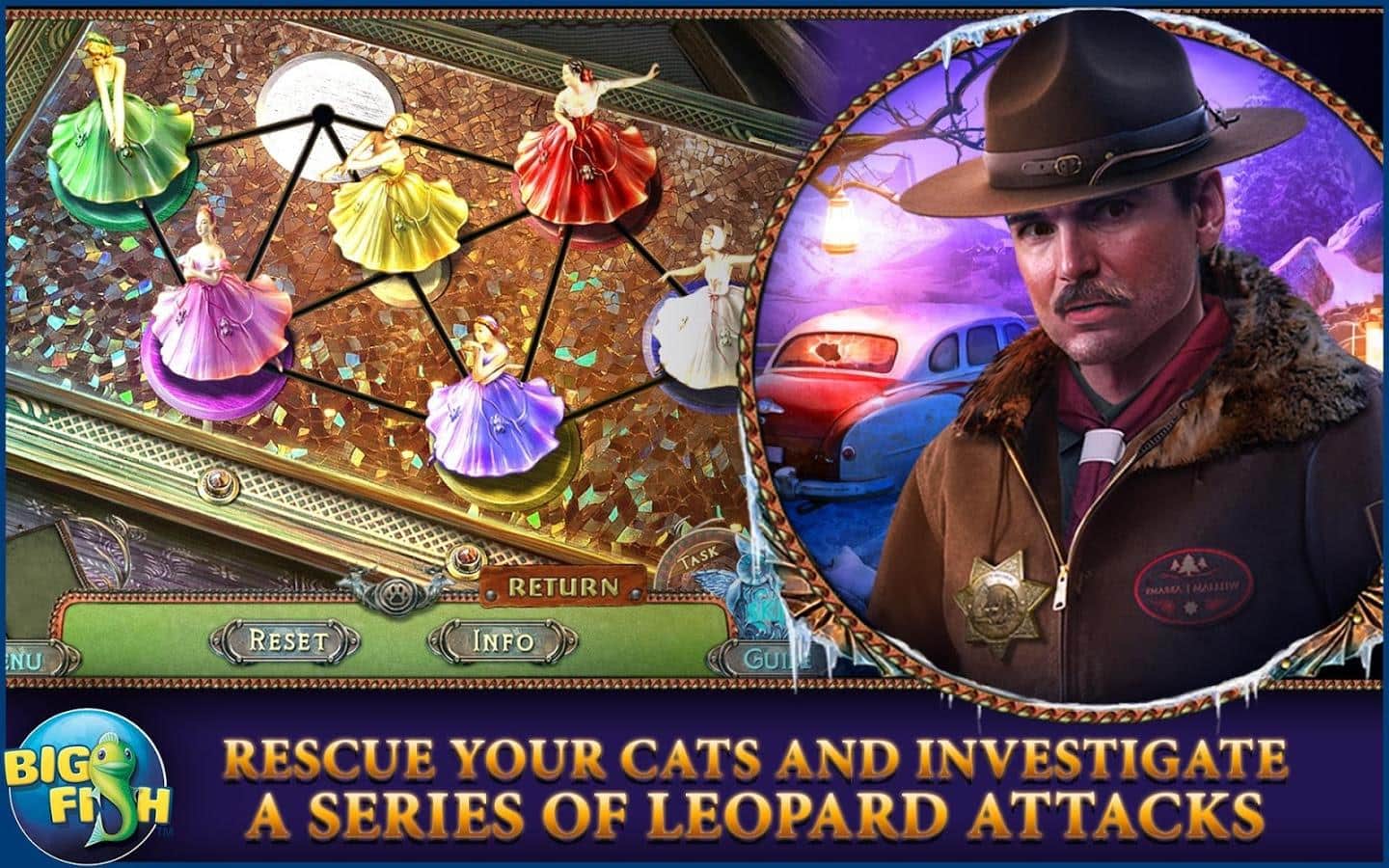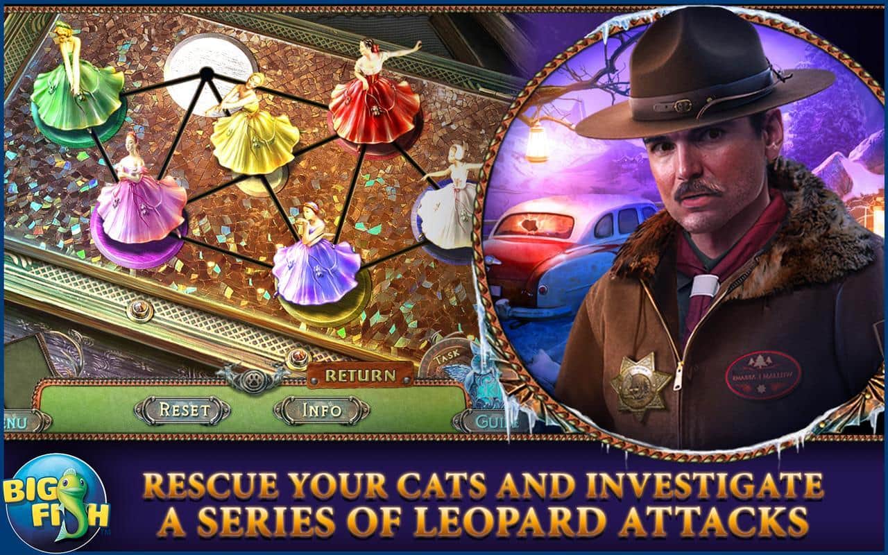 Fierce Tales: Feline Sight / Жестокие истории. Кошачий - В маленьком городке Сноунвилль жителей города постепенно начинает охватывать паника, после нескольких серий нападений снежного леопарда. Так как вы лучший эксперт по кошкам и по совместительству ветеринар этого городка, именно вам нужно будет разгадать загадки этих таинственных нападений. Резко история принимает личный характер, после того как ваши домашние кошки убегает вслед за диким леопардом...