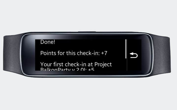 Fifthsquare - приложение позволяющее сделать чекин с помощью часов Gear Fit. Кто не знает «чекин» в переводе означает отметиться по прибытии. То есть попав в новое для вас места мы отмечаем что вы там были, в соцеальных сетях это частое явление. Для работы программы от вас требуется включённый wi-fi и GPS