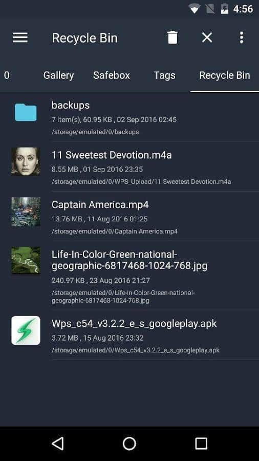 - Возможность разделения информации по типам (Картинки, Видео, Музыка, Офисные документы, APK, Архивы)