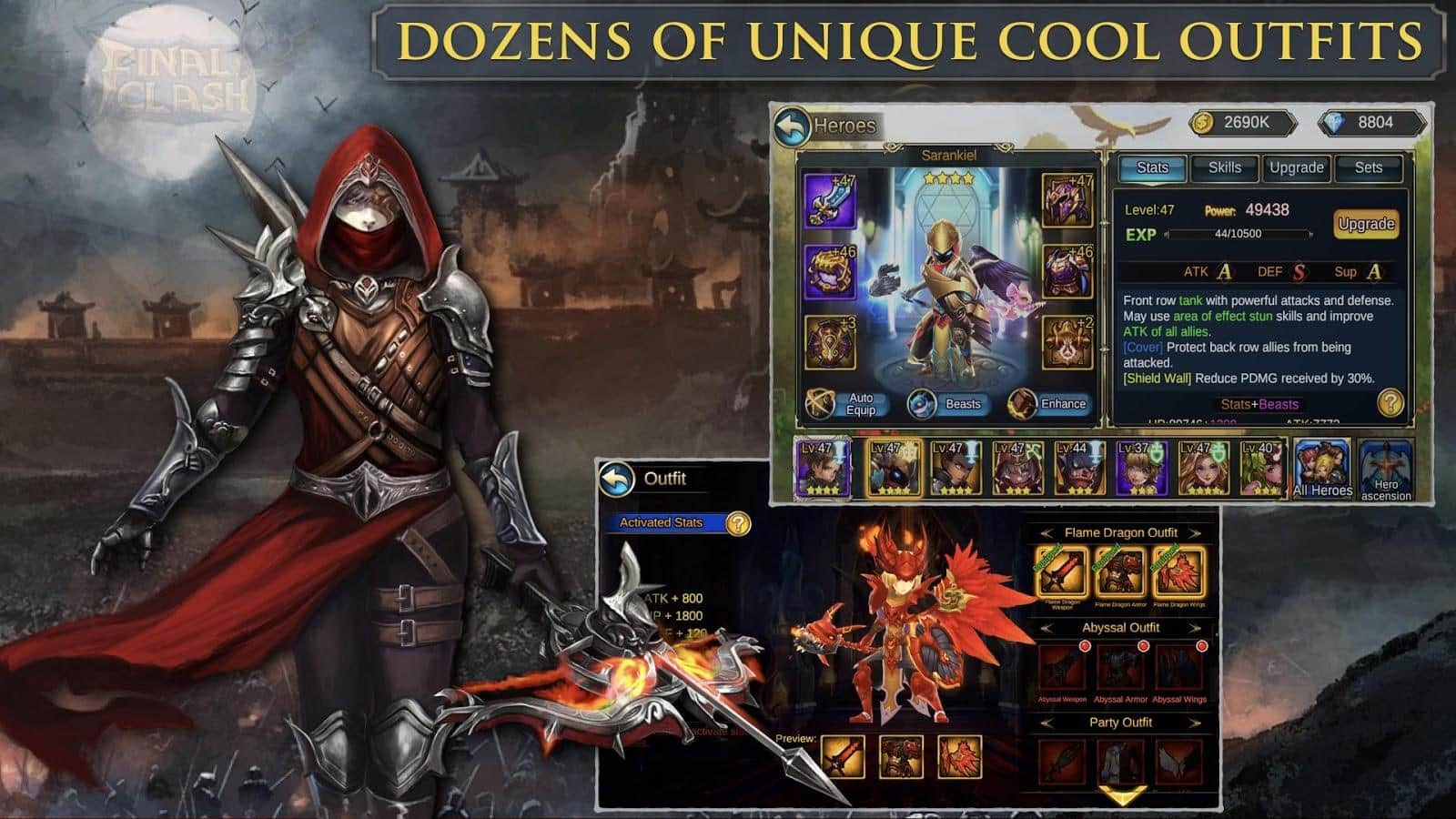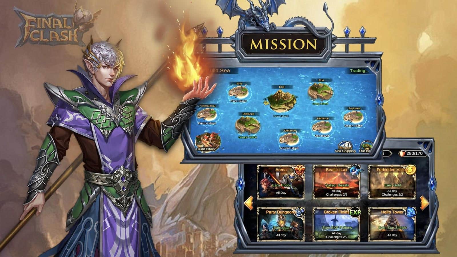 Final Clash -3D FANTASY MMORPG – соберите команду отважных героев и проведите их по многочисленным и опасным локациям игры. В этой игре вы окунетесь в увлекательный мир опасных монстров, эпических битв и многочисленных сокровищ. Путешествуйте по темным подземельям и вступайте в бой с врагами, которых не так просто будет победить. Применяйте в бою умения каждого из героев и разрабатывайте свою стратегию ведения битвы, чередуя защиты и атаки. Собирайте после удачной битвы свою добычу и улучшайте навыки своих воинов. Пополняйте свою команду отважными питомцами, которые будут помогать вам в боях. Играйте с друзьями и создавайте с ними альянсы.