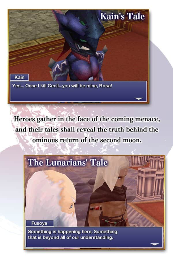 FINAL FANTASY IV: AFTER YEARS - Продолжение всеми известной серии игры FINAL FANTASY. Сюжет игры развивается спустя несколько десятилетий после последних событий в FINAL FANTASY IV. В игре присутствуют уже, как и известные герои, так и новые, в частности сын Сесила и Розы принц Теодор. Вы начинаете свое путешествие с главы Истории Теодора. Завершите его, чтобы открыть истории шести дополнительных персонажей, а всего полный сюжет игры состоит из 10 отдельных историй.