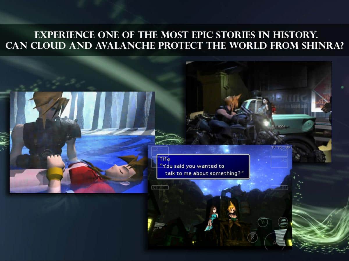 FINAL FANTASY VII – Действия игры проходят в вымышленном мире, выполненном в антураже научной фантастики с элементами фэнтэзи. Главный герой - Клауд Страйф со своей группой эко-терористов «Лавина» ведет борьбу с мегакорпорацией «Шин-Ра», деятельность которой ведет к истощению источника энергии на планете. Но в процессе игры, герои узнают о еще более опасных злодеях, угрожающих не только их жизням, но и жизни всей планеты.