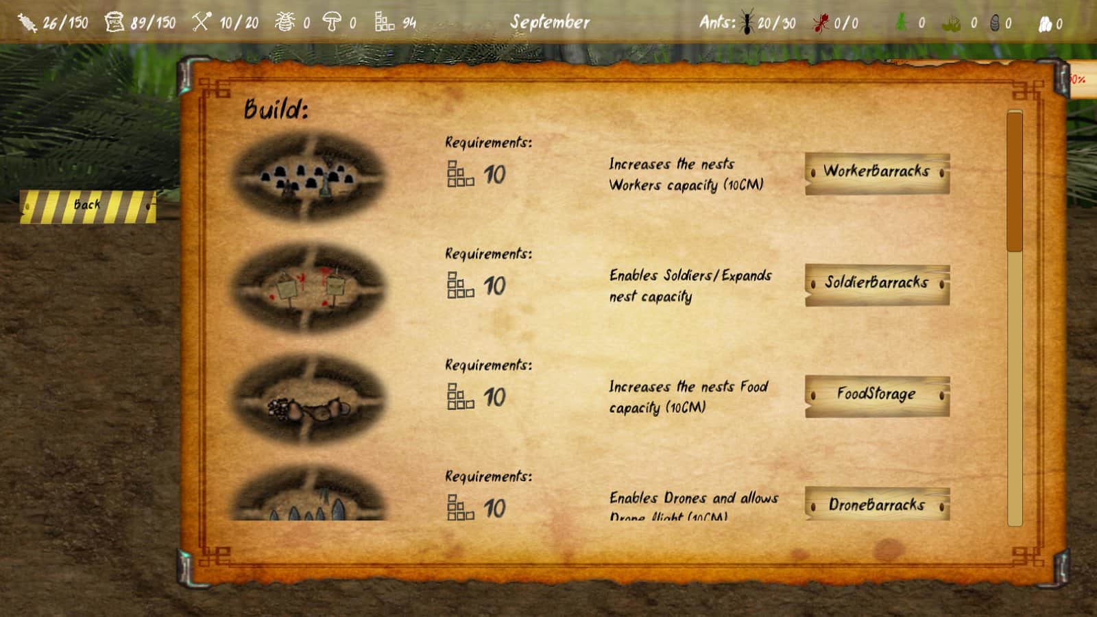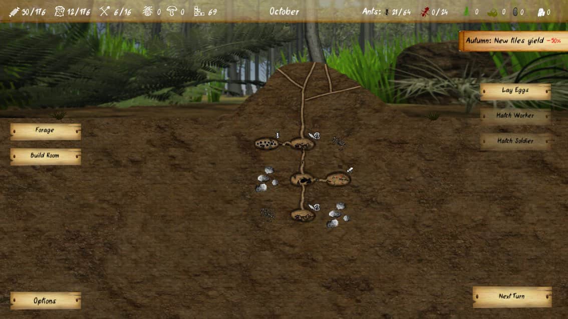 Finally Ants - игра которая представляет из себя нечто среднее между симулятором, стратегией и ролевкой и сейчас поймете как разработчикам удалось совместить все эти жанры в одном проекте. И так, вам предстоит взять под свое управление постройку муравейника, в вашем распоряжении будет различные виды насекомых, возможность строительства различных комнат и многое другое. При этом не стоит забывать что вам необходимо создать достаточную систему укреплений и обороны, ведь еще одной целью, помимо создания жилья является защита матки. Исследование окружающего мира так же входит в ваши обязанности, так что готовьтесь к путешествиям. Другими словами перед нами симулятор муравейника, муравья и жизни этих удивительных насекомых.