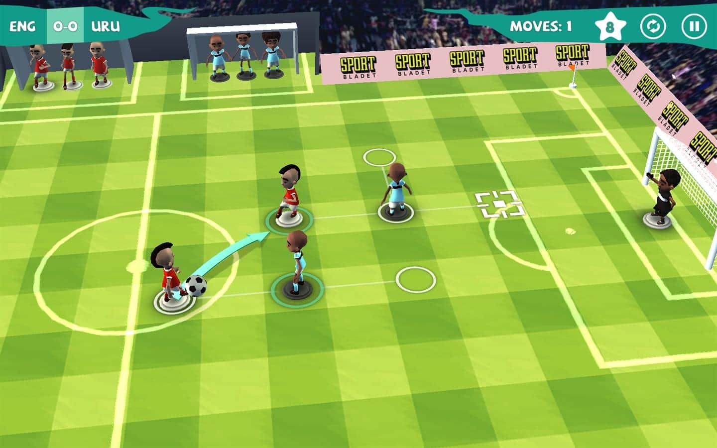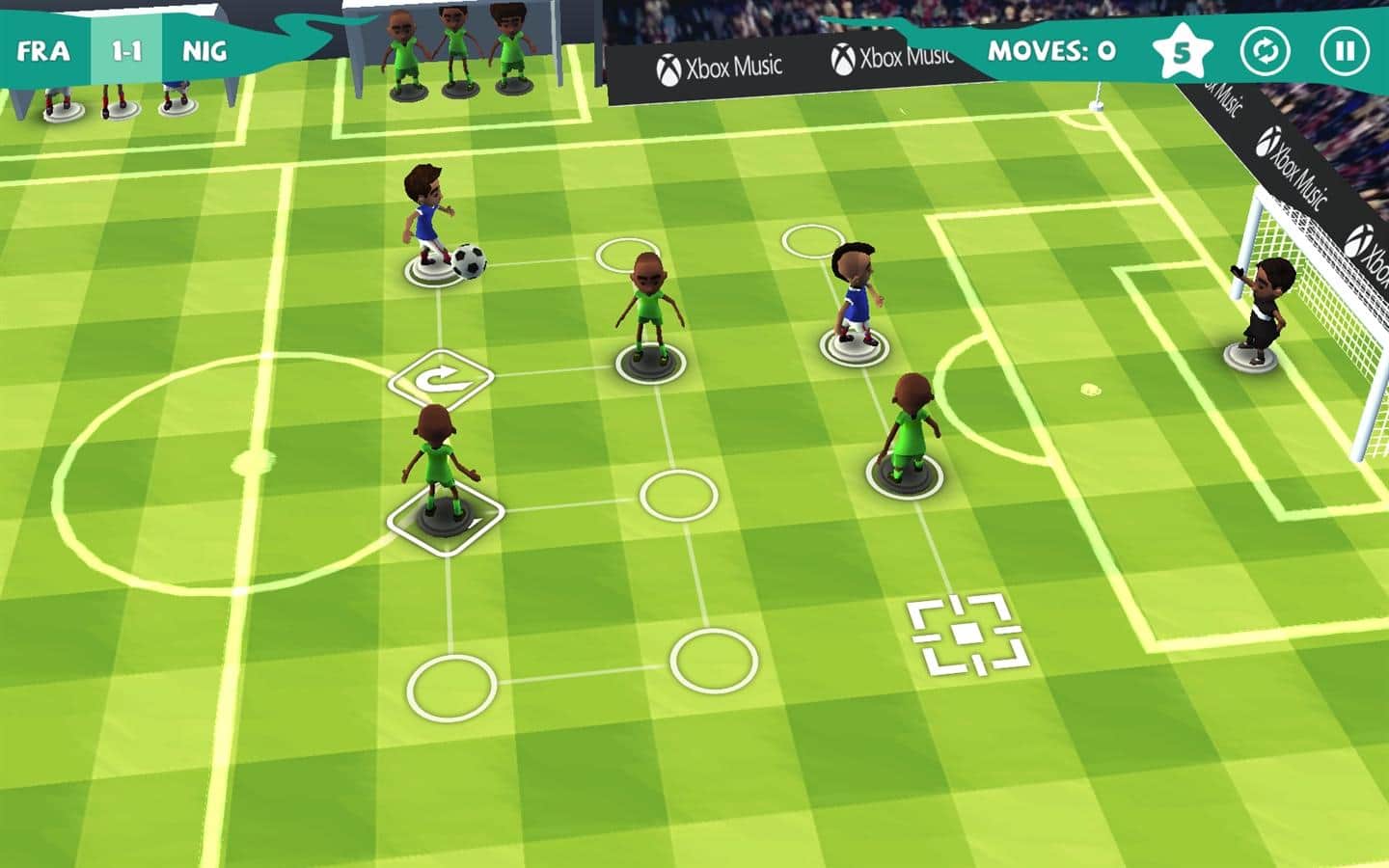 Find a Way Soccer - пошаговая стратегия на футбольную тематику для windows phone. В этой игре вам предстоит разрабатывать свою стратегию для того чтобы забить мяч в ворота противника. Передавайте мяч от одного игрока к другому и не дайте противнику отобрать его, чем больше ходов вы будет делать, тем больше игроков появится у вас на поле. Забивайте голы в минимальное количество ходов и получайте звезды и бонусы для своей команды. Отличная музыка поможет вам настроиться на игру и спланировать правильные ходы.