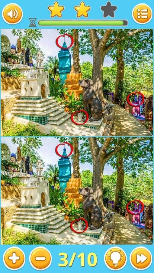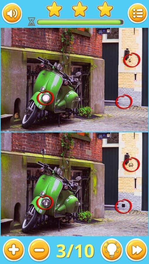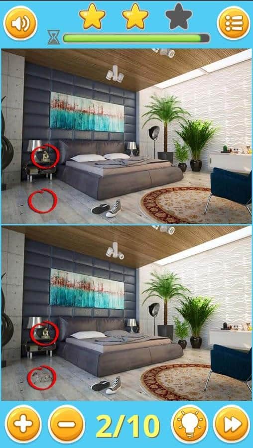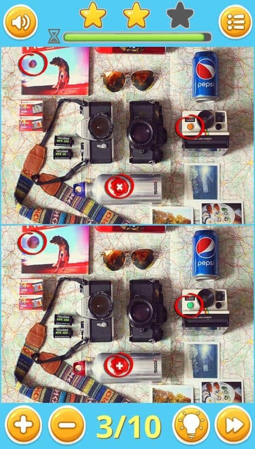 Find Differences: Puzzle Game – классическая игра из жанра «найди отличия». В этой игре перед вами на экране покажутся одинаковые на первый взгляд картинки на которых вы будете искать 10 отличий. Играйте в эту игру и развивайте свое внимание, память и сообразительность. Эта игра отлично подойдет как для детей, так и для взрослых. Все картинки рассортированы по разным категориям, которых в игре огромное количество таких как: животные, искусство, машины, еда, праздники, интерьер, объекты, люди, винтаж и путешествия. Всего в игре вы найдете 250 уровней, картинки отличного качества и возможность приближать их.