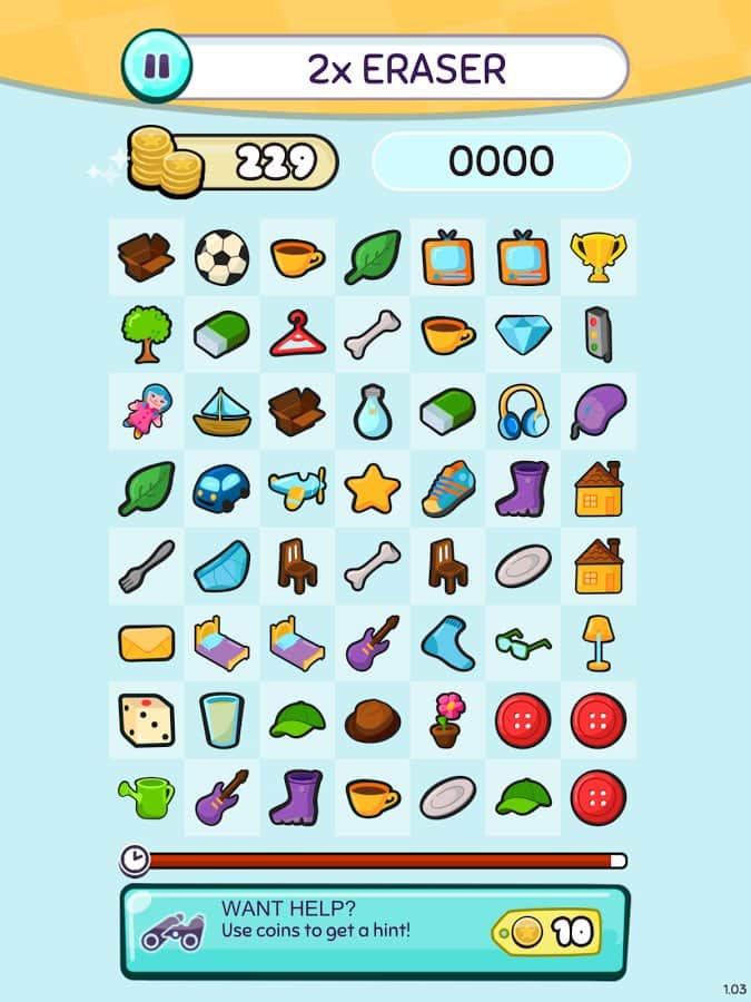 Find Stuff - Doodle match game – захватывающая игра на андроид, где вы будете искать различные предметы. В этой игре перед вами окажется поле, на котором находиться большое количество разнообразных предметов вашей задачей будет найти среди этого разнообразие нужный вам объект. Проходите увлекательные миссии как можно быстрее ведь у вас будет ограниченное количество времени. В игре представлено большое количество различных категорий выбирайте понравившуюся вам и начинайте игру. Играйте со своими друзьями на одном устройстве и быстрее своего оппонента находите нужные предметы.