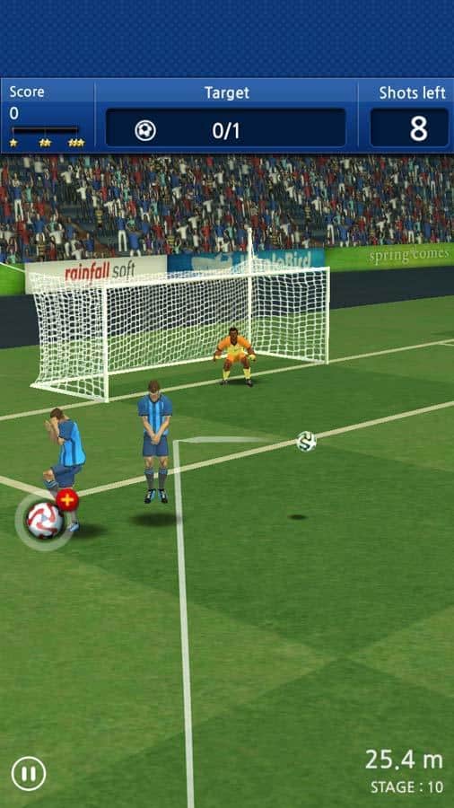 Finger soccer : Football kick - Надоели все эти симуляторы футбола где большую часть времени вы просто бегаете по полю? Сыграйте в серию штрафных ударов с простым и удобным управлением. Вам предстоит забивать мяч в сетку ворот с разного расстояния, используя различные приемы или даже супер способности! Попадайте в отведенные зоны что бы получить больше очков и улучшить своего футболиста.