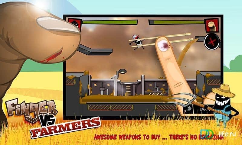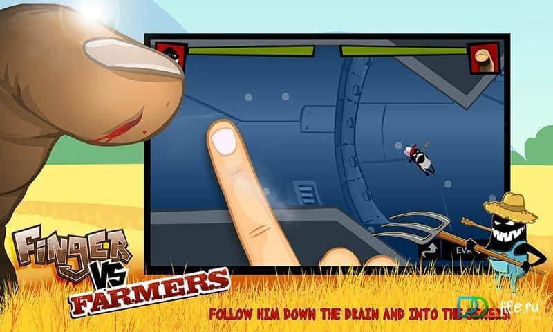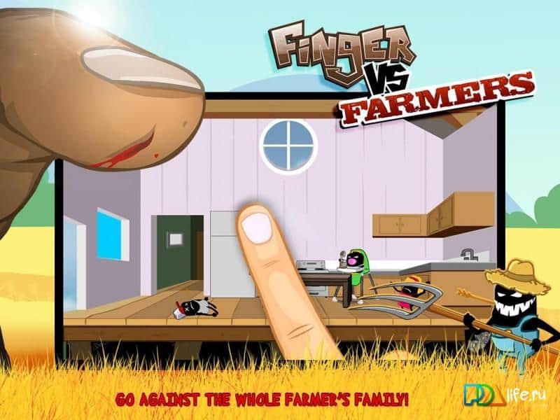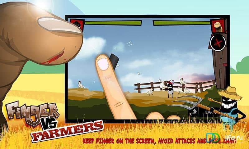 Наверно многие обладатели Андроид - устройств помнят увлекательную аркаду от студии Brutal Studio под названием Finger VS Axes. Игра относилась, по мнению разработчиков, к совершенно новому жанру "симулятор пальца". Что сказать? Идея была и прям нова и оригинальна, вам предстояло отправиться в древний мир и при помощи собственного пальца наводить свои порядки. Раскидывать рыцарей, а вооружившись вы получали возможность вы получали возможность их еще и здорово потрепать, или даже разрушить замок. Игра в силу своего необычного геймплея и полной интерактивности, а так же хорошей графики завоевала огромную популярность. Finger VS Farmers - продолжение симулятора пальца, но на этот раз вам предстоит применить свои таланты по управлению предметами и изменениями окружающей среды против злобных фермеров. Во всем остальном игра немногим отличается от первой части.