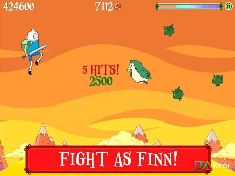 Fionna Fights - Adventure Time - Забавная аркада на андроид, которая перенесет вас в необычный мультяшный мир. Вам предстоит поиграть храбрым женщиной-воином, которая отправилась на спасению принца. Злой маршал схватил его, и превратил птиц монстров, которые будут на вас нападать. Вам на помощь придут ваш верный меч и волшебные животные – друзья героини игры.