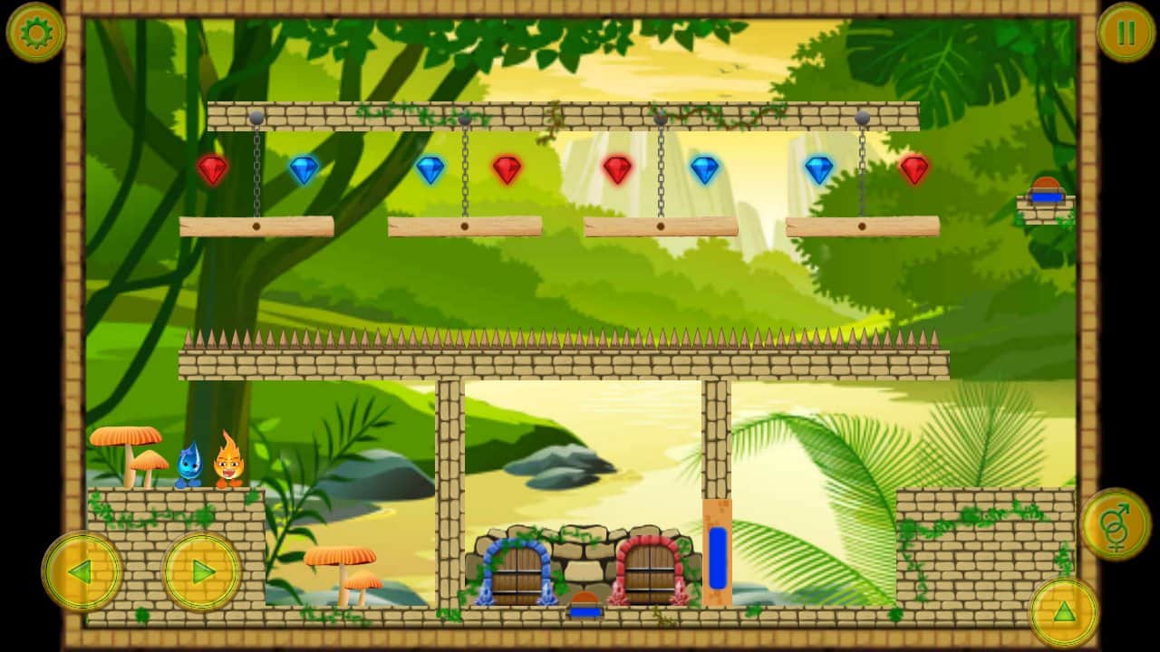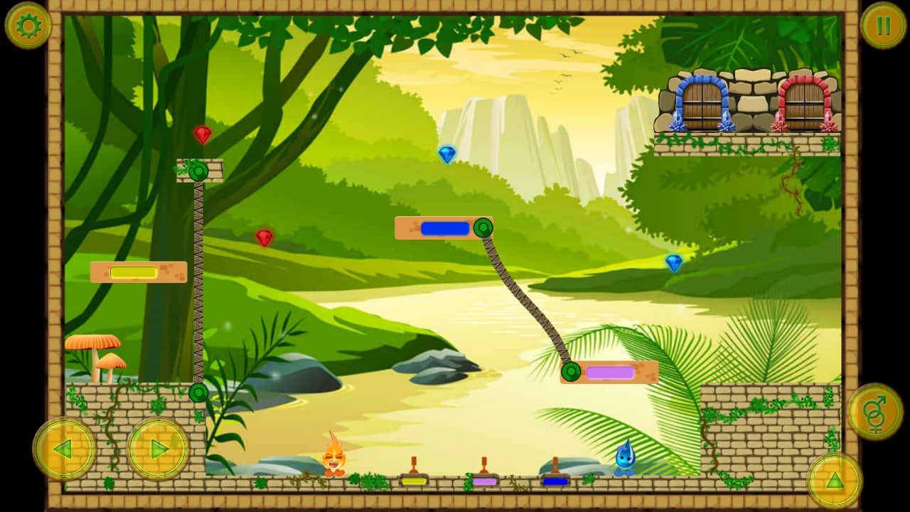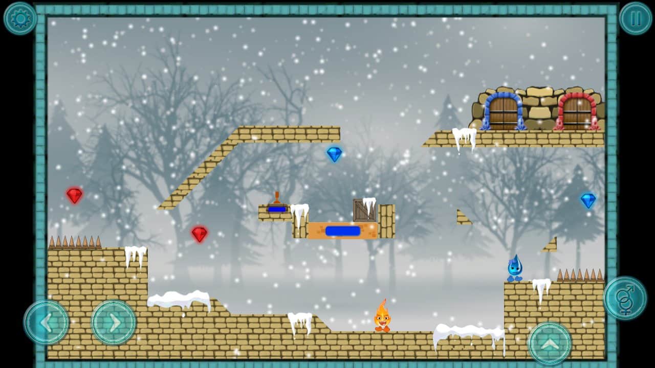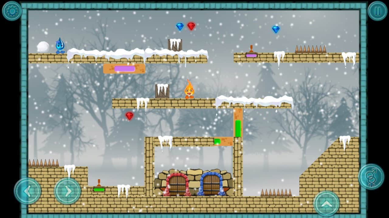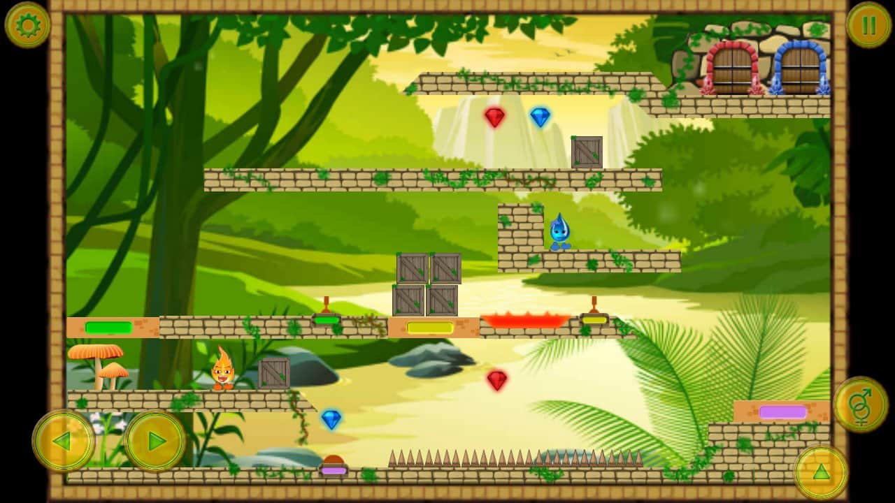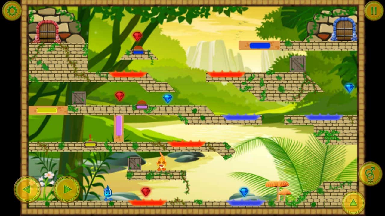 Fire And Water – платформер на андроид, где вы будете помогать двум стихиям проходить опасные испытания. Возьмите под свой контроль два объекта капельку воды и искорку огня и проведите их по всем уровням этой интересной игры, разгадывая непростые головоломки и стараясь найти выход. Не забывайте по пути собирать все алмазы для каждого объекта свой, которые помогут открыть новые уровни. Основанная цель этой игры добраться до заветной двери, которая ведет на следующий уровень. Играйте с друзьями в эту игру и устанавливайте свои рекорды в игре, добиваясь наилучших результатов.