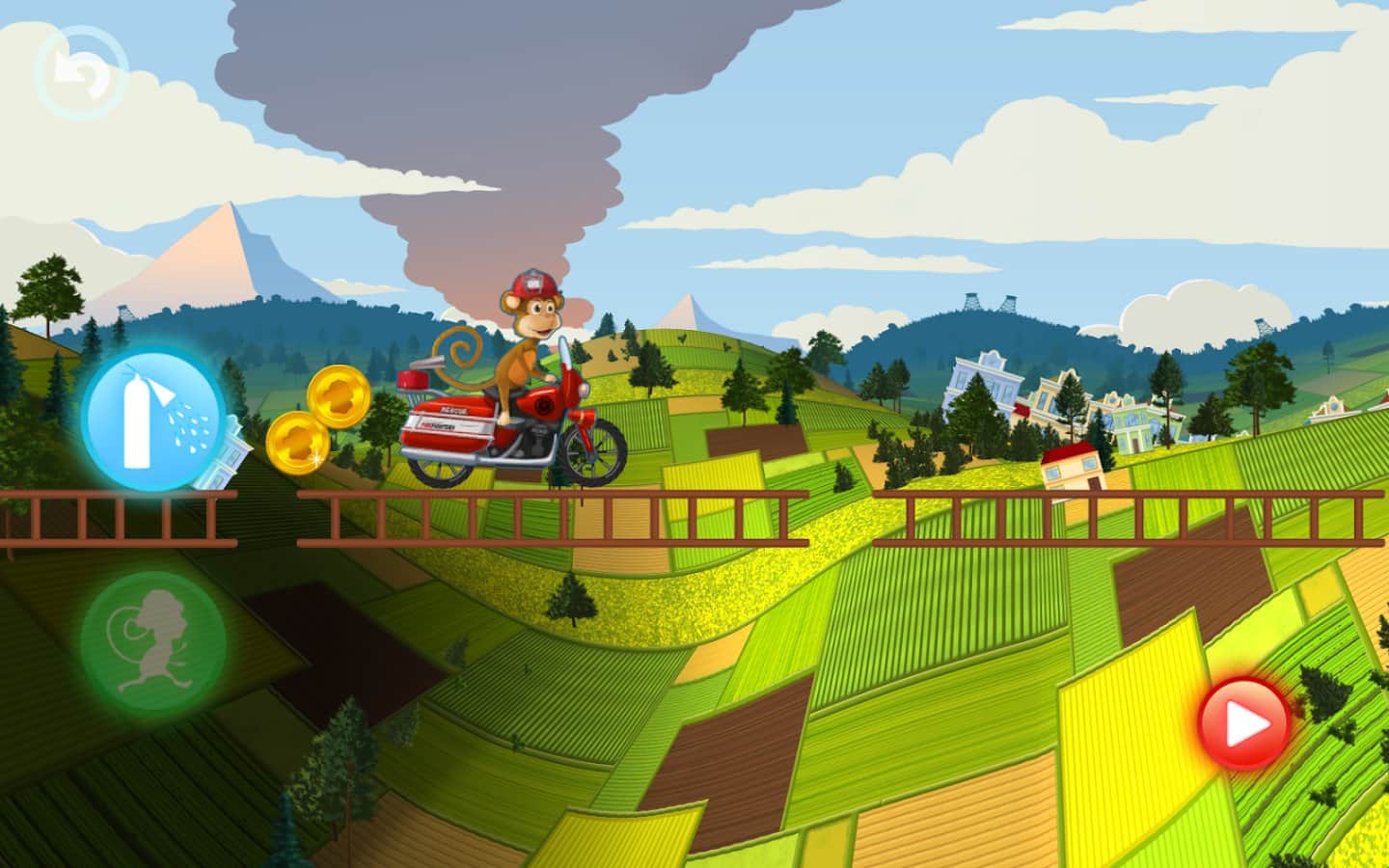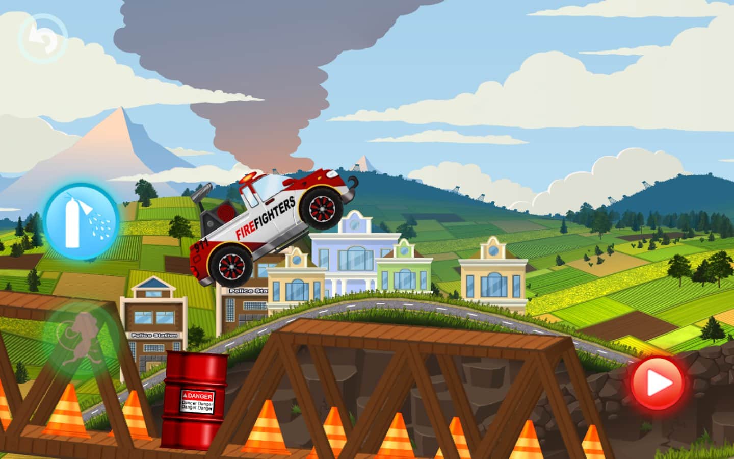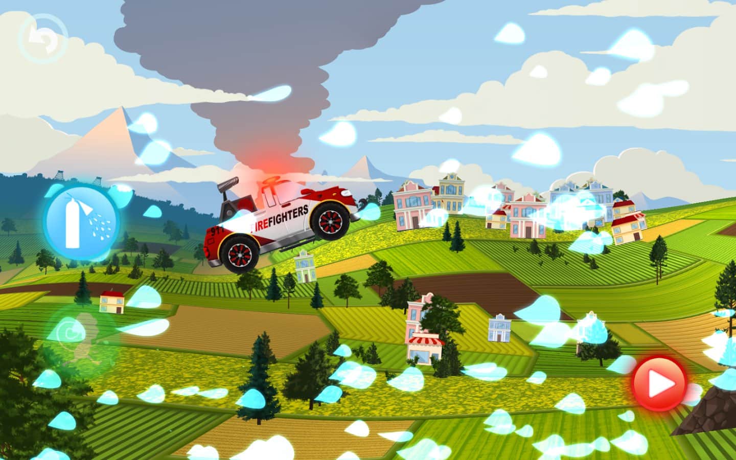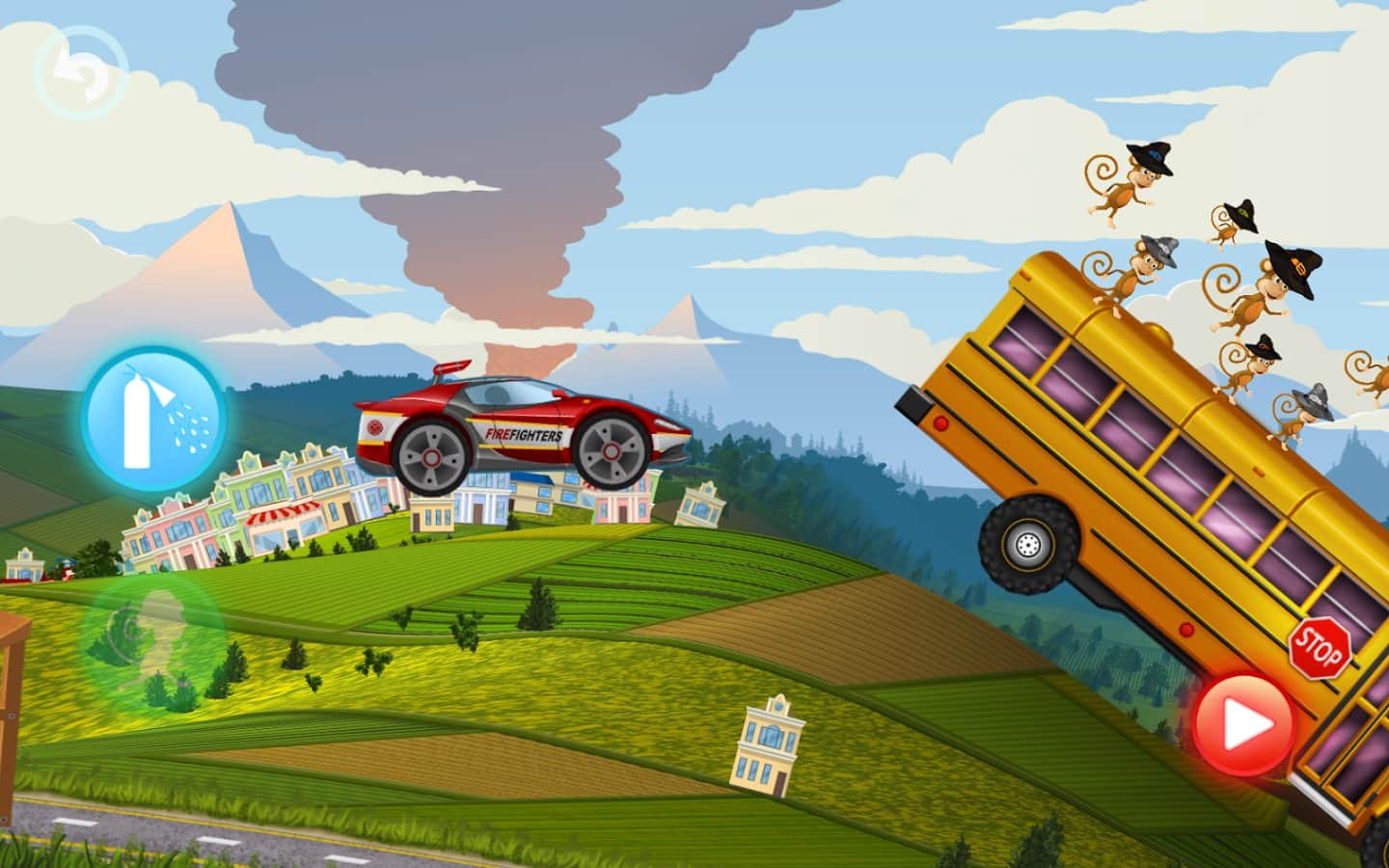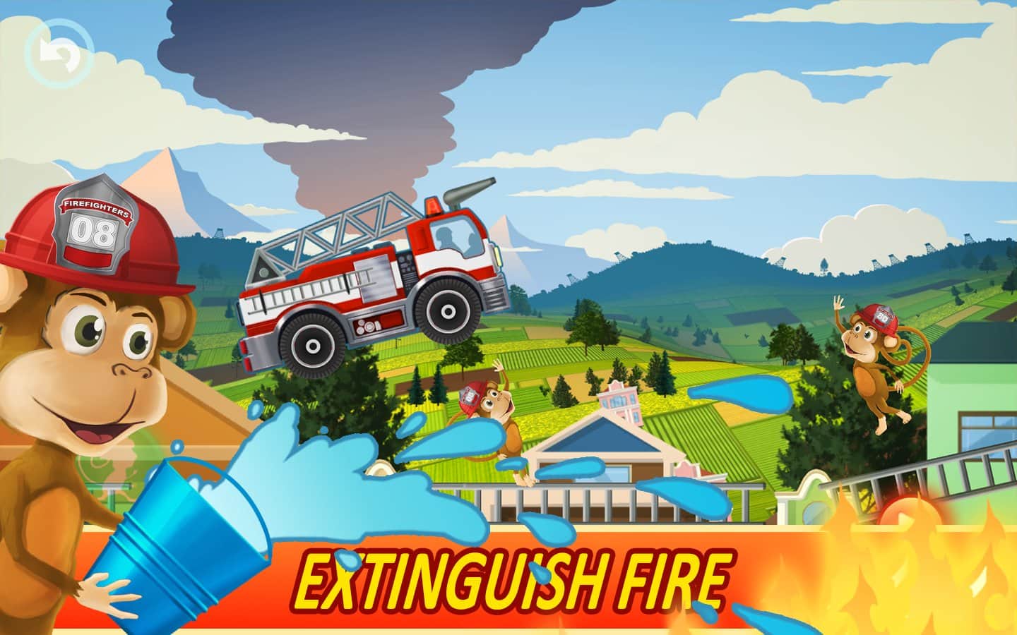 Fire Fighters Racing for Kids – увлекательная игра для детей на андроид, где они будут управлять пожарной машиной. Ведите свою пожарную машину по улицам огромного города и первым приезжайте тушить пожар. Управляйте пожарной машиной и обходите все препятствия на своем пути, взбирайтесь на высокие склоны и избегайте столкновений с преградами и другими машинами. Доберитесь до очага возгорания как можно быстрее, ведь от этого будет зависеть, сможете вы его потушить самостоятельно или нет. Призывайте на помощь милых обезьян, которые будут помогать вам на протяжении всего пути, а также тушить пожар. Выполняйте интересные миссии и открывайте новые пожарные машины.