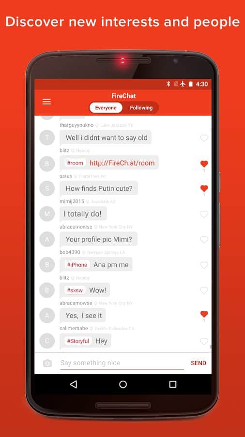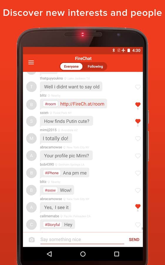 Вся суть данного приложения в обмене сообщениями там, где нет доступа в интернет, так как для передачи используется прямое подключение по Bluetooth или Wi-Fi. Благодаря возможности отправлять сообщения всем пользователям поблизости, FireChat стал популярен при проведении массовых мероприятий. В Сети можно найти немало информации по поводу принципа работы чата, мы же сосредоточимся на его функциональности.
