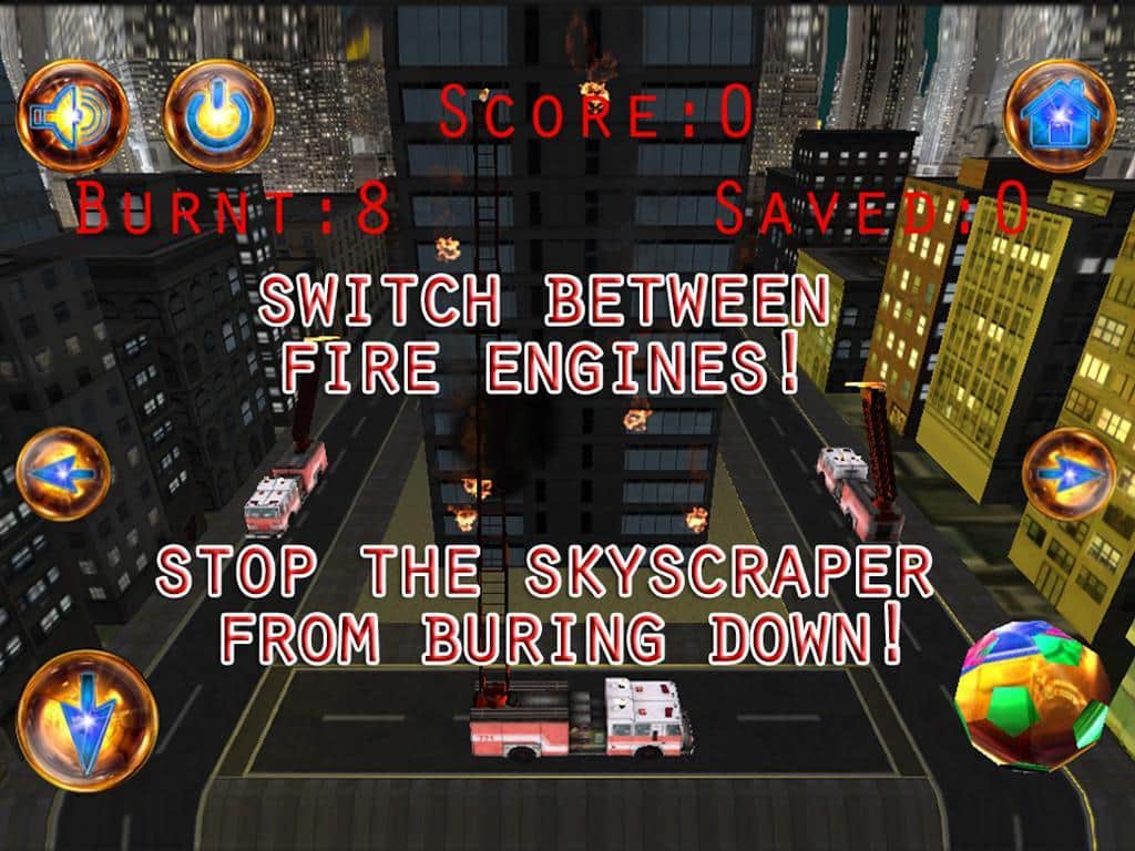 FireFight - почуствую себя пожарников вместе с новой игрой на андроид. В различных уголках вашего города бушуют пожары. Ваша задача их тушить на пожарной машине, так-же будет возможность использовать специальный пожарный катер. Пожары в городе, лесные пожары, огонь в аэропорту - всё это вы должны потушить за короткое время. В игре есть возможность соревноваться с друзьями посредством таблицы рейтнига Game Center.