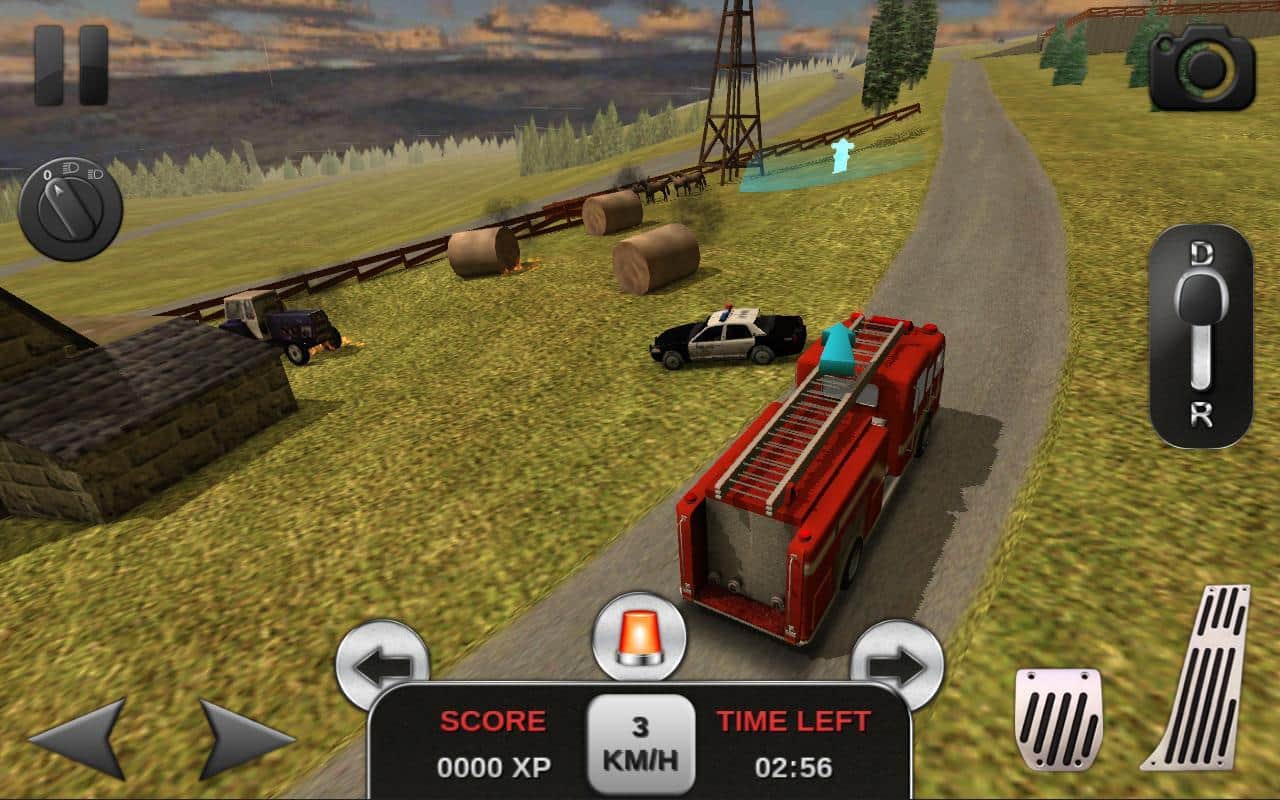 Firefighter Simulator 3D - Отличный трехмерный симулятор пожарного на андроид. Вас ждет шесть разнообразных пожарных авто, в том числе вертолет, джип, и полно приводная машина с восемью колесами, которая поможет вам в горных условиях. Ваша задача – за определенное время доехать на место пожара и естественно потушить его. Так же вы будете сбрасывать воду с вертолета. Это поможет погасить большие объекты.