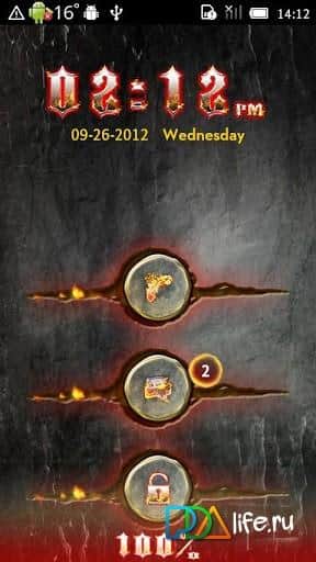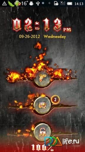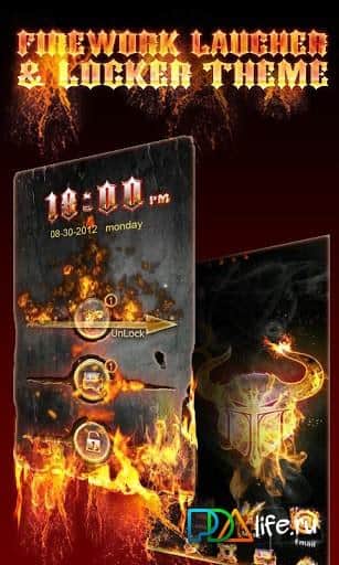 Firework GO Locker Theme – огненный блокировщик для андроид смартфона/планшта от разработчика Freedom Design. Клевое оформление в виде листа металла и анимации языков пламени. Лист металла пронизывают три железных кнопки, отвечающих за Телефон, Сообщения и Разблокировку. Для снятия с блокирования экрана или приложения, достаточно провести от одного края щели в металле к другому. Взрыв и разбитый экран сделают свое дело =). Так же Firework GO Locker Theme содержит дату и время вверху экрана устройства. Всем приятных взрывов и огненного настроения.