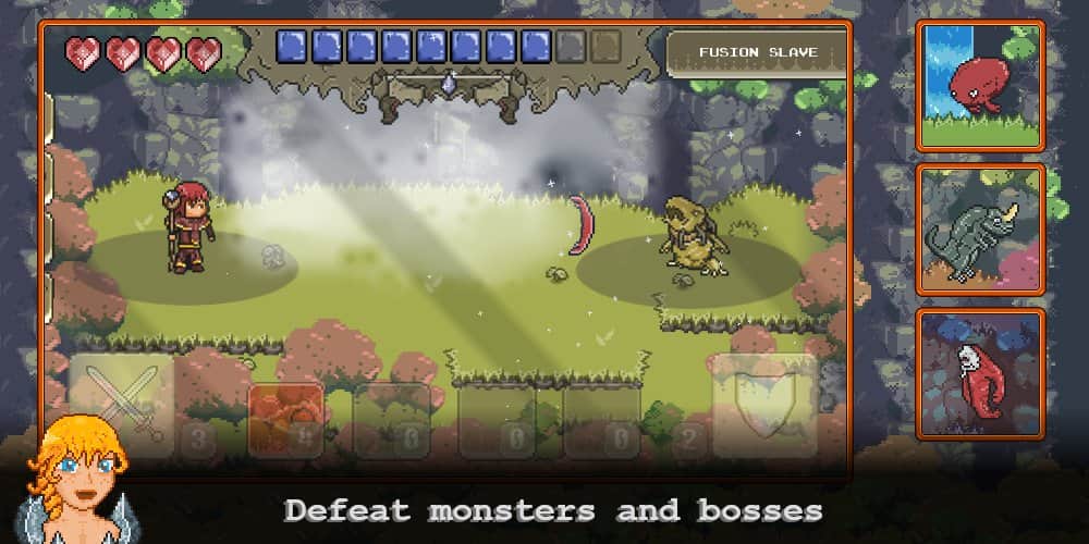 First Fang RPG – пиксельное RPG на андроид, где вы будете очищать плавающие острова от монстров. Выбирайте себе героя из представленных в игре персонажей каждый из которых будет иметь свой класс. Настраивайте героя по своему усмотрению и отправляйтесь в путешествие где вас будете ждать эпические битвы. Путешествуйте до плавучих островов на воздушном шаре и исследуйте их ища предметы и оружие. Экипируйте своего персонажа готовя его к битве с монстрами и боссами. Впереди вас ждут битвы с четырьмя боссами используйте свою ловкость, смекалку и оружие и одержите победу над злом. Играйте в эту игру и наслаждайтесь увлекательным сюжетом, многочисленными уровнями и встроенными квестами.