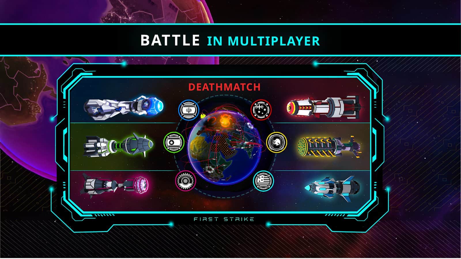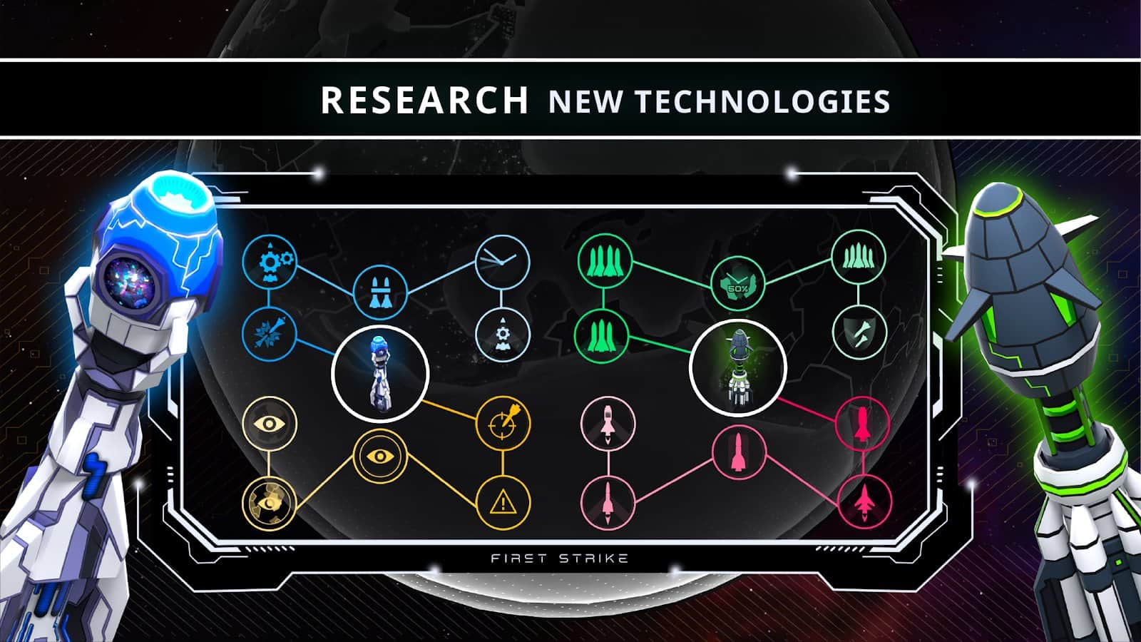 Вы - самый главный человек в своей стране и любой ценой должны предотвратить надвигающийся взрыв и ядерный конфликт в First Strike! Создайте безопасные условия для проживания жителям и разрабатываете собственную тактику борьбы с ядерными державами. Чтобы быть сильнее, вы обязаны обновлять свой атомный арсенал, применять и усовершенствовать мощное оружие, строить убежища и увеличивать мощь армии. Инвестируя средства в научные исследования, вы получите больше преимуществ: увеличение размера бомб, скорости действия военных сил, разведки, системы обороны.